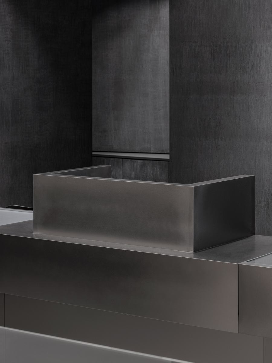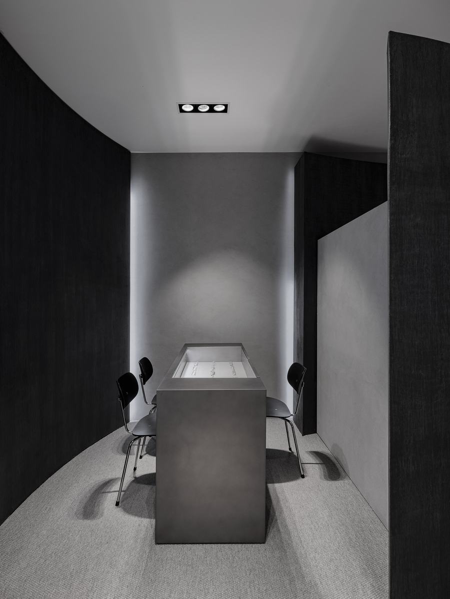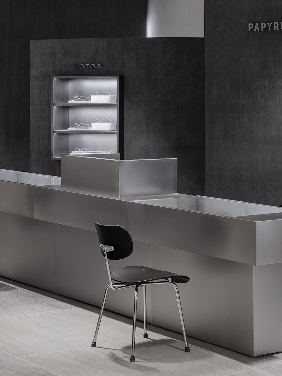 眼镜是整个简约内部的最核心的东西,它的外观由粗糙的纹理和不锈钢并列,黑白配色方案和不同尺寸的墙壁——直的,凹的或凸的,结构是对光学镜片本身的一种新的诠释。