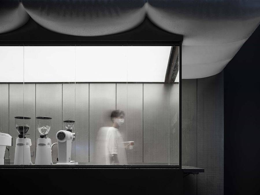 我们使用有限的调色板,并故意降低饱和度,以强调窗户和立面的自由设计,这有助于消除顾客和咖啡师之间的隔阂。最后,倾斜的细柱子为空间增添了一层活力。