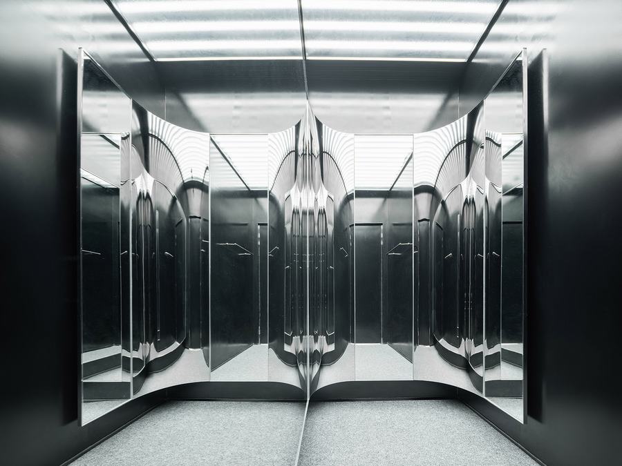 空间布局简单,但悬空的面板提出了一个实际问题,因为它的长度超过20米,重近10吨。如何让这个又长又重的展示平台漂浮在空中,达到强度与轻盈的微妙平衡,是核心结构设计的一个关键挑战,也是一个突破。设计师从悬索桥的斜拉桥结构中获得灵感,该结构依赖于一个单一的结构柱在中间,大跨度的电缆支撑,并以三角形的方式斜拉。这是另一个突破,表达了独特的结构美学。