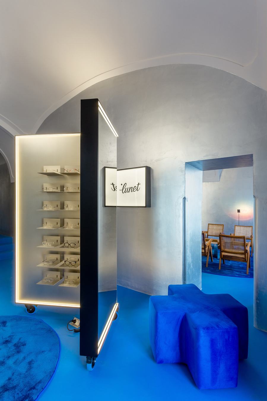 Lunet旗舰店是由同名眼具品牌开设的第二个空间,延续了他们的审美和非传统的方式来增加购买眼镜的整个体验。设计理念是以这种方式借用第一家商店的一些关键元素,让你感觉进入了Lunet宇宙,但同时创造了一个独特和特别设计的空间,适应新的环境。