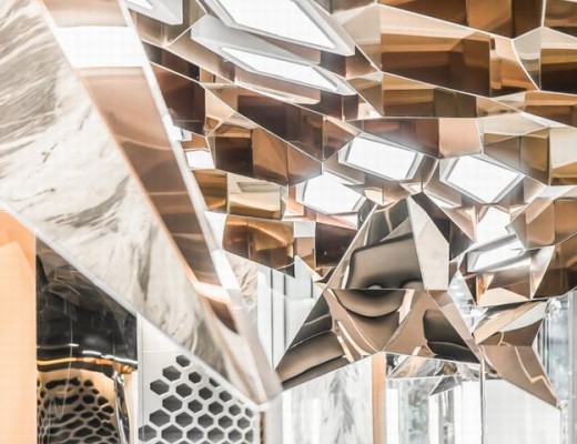店内利用不规则的胡桃木组架系统穿梭陈列空间,贯穿全店提供视觉空间的分隔,构筑极具工艺感的轮廓线条,呈现 Carhartt WIP 的实用美学。而以木质艺术切割制作的陈列装置,与不同水泥质感构成的明净的空间形成强烈的视觉对比。