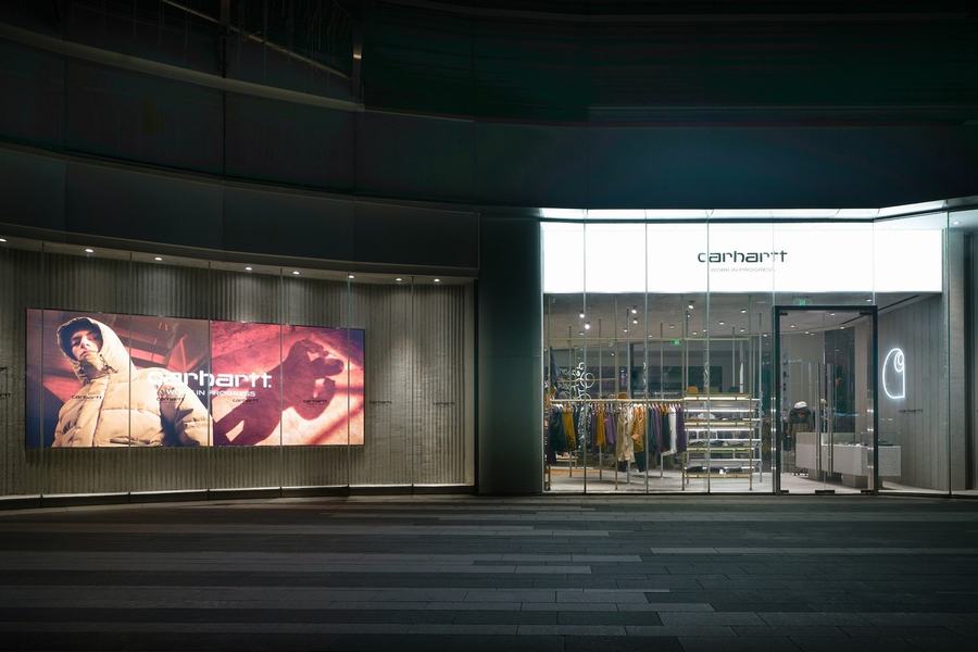 Carhartt WIP 于本月正式进驻广州天河区购物中心万菱汇,打造品牌位于华南地区的首家专门店。该店铺由米兰设计师 Andrea Caputo 及其工作室操刀设计,与全球最新 Carhartt WIP 品牌店的设计概念与调性一脉相承,以水泥板为主搭建的空间,配合幻金色层架,呈现简约的质感与现代工业风格。