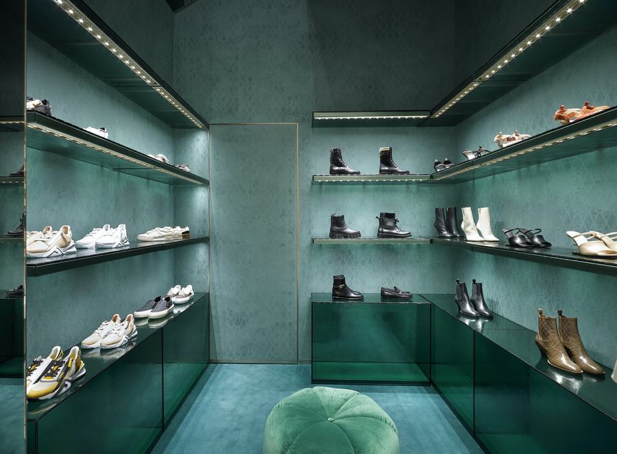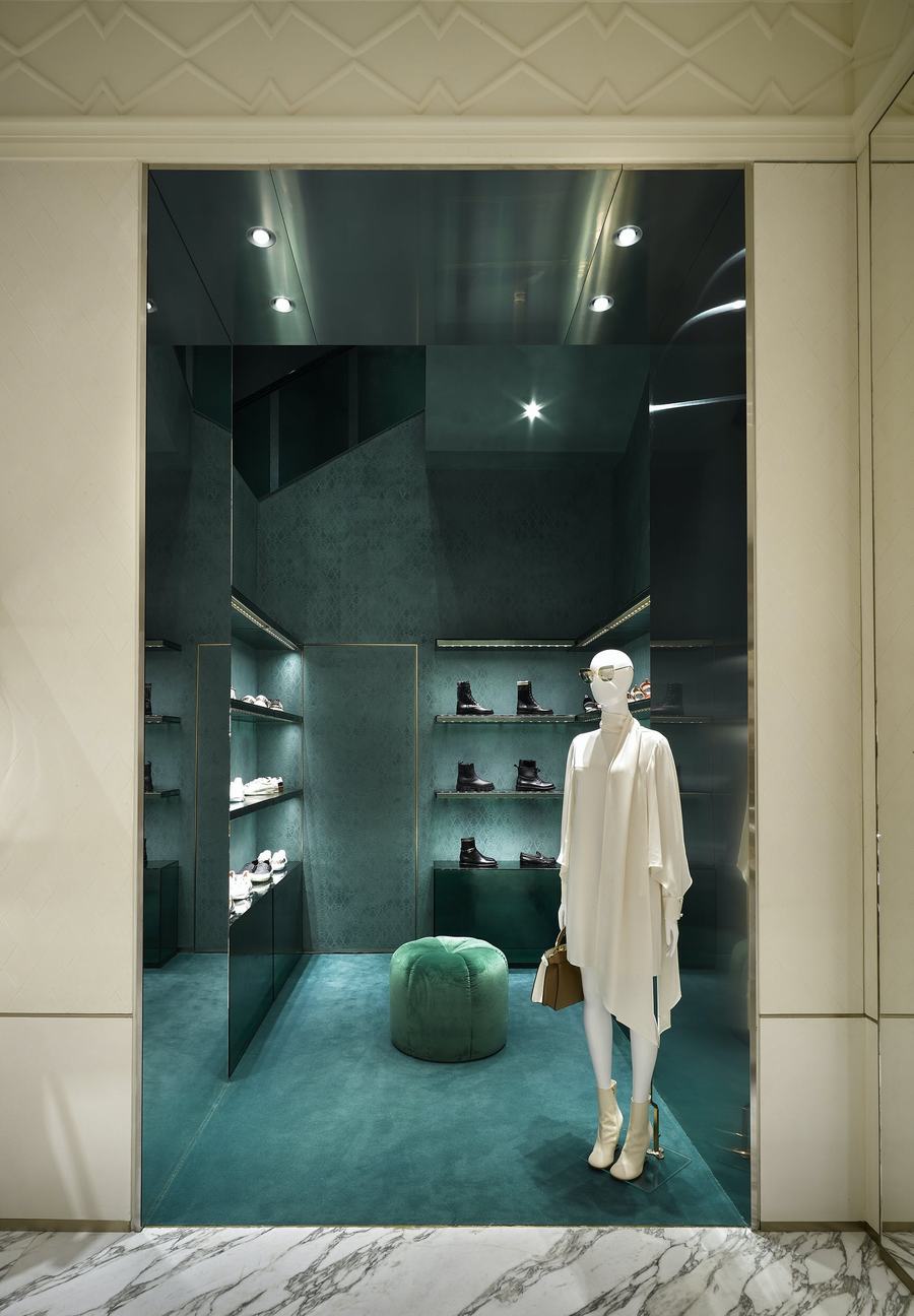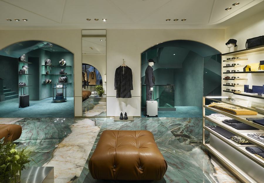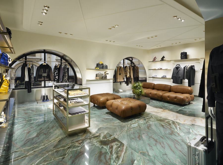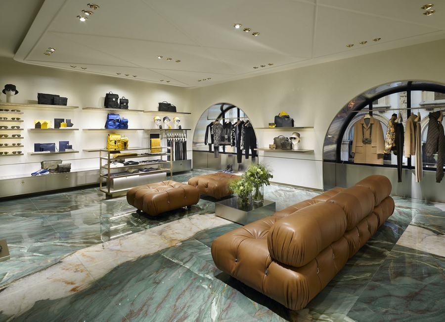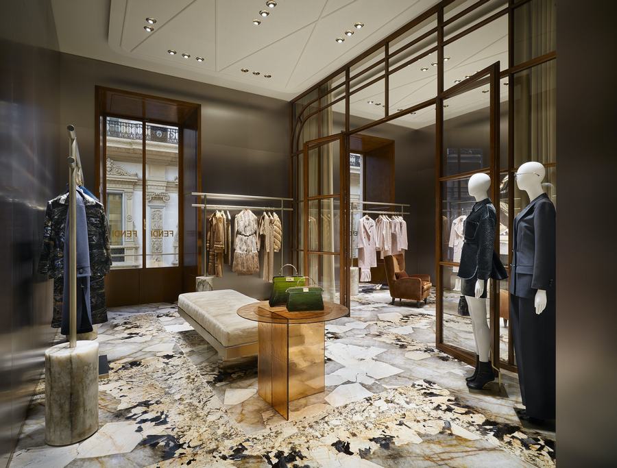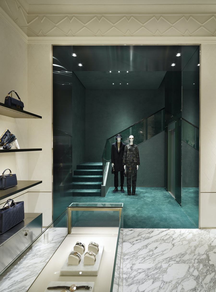 Fendi 在米兰开设的第二家旗舰店秉承品牌精神,将传统与创新进行对比。1920 年代的富裕与干净、现代的美学相融合,反映了该品牌的罗马传统和现代设计。