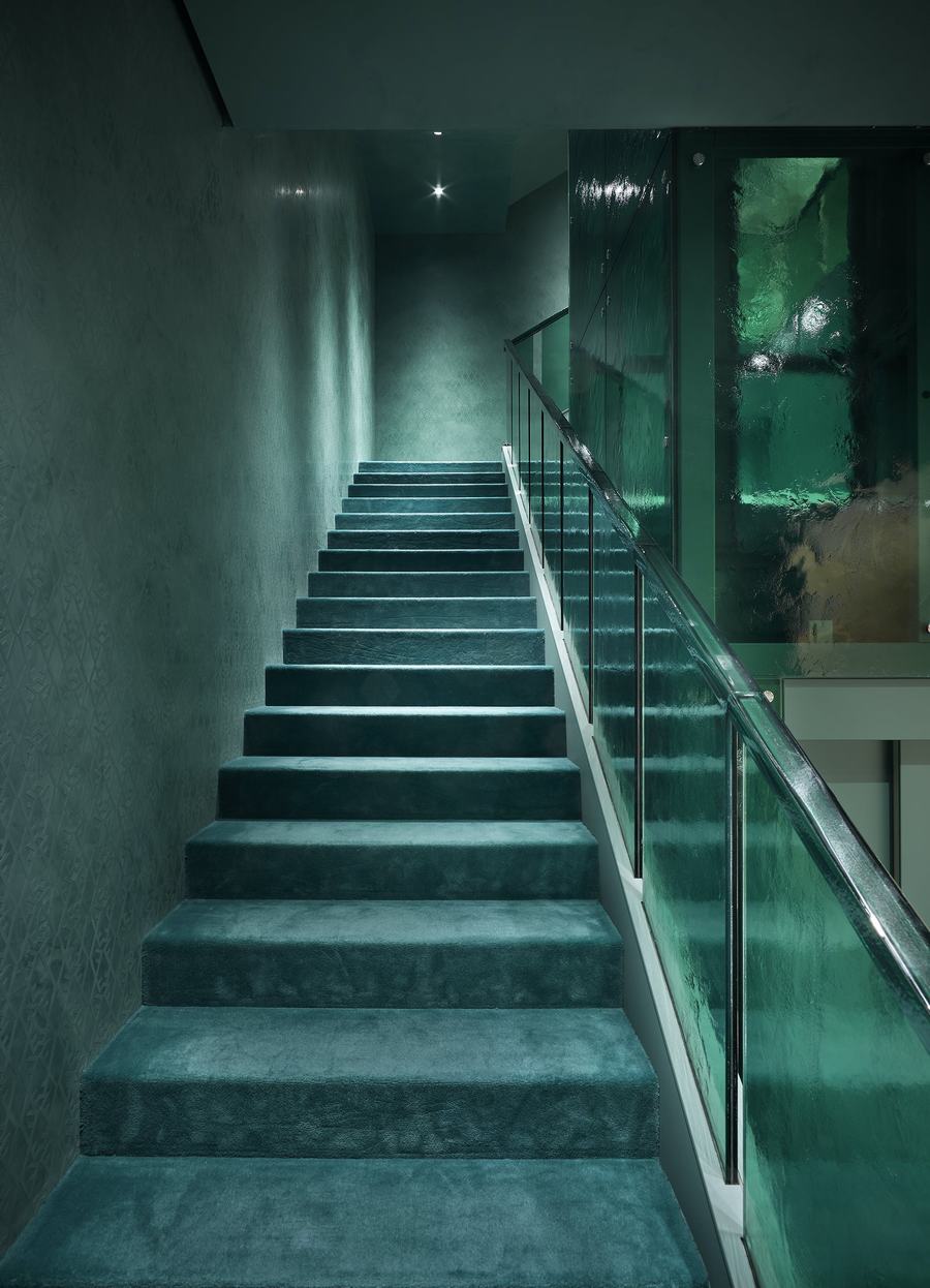 当客人进入华丽的立面,他们立即瞥见了特殊的楼梯区域,反映了整个楼层的胭脂。通过KL主题的手工灰泥墙和融合玻璃扶手,进一步强调了环境。