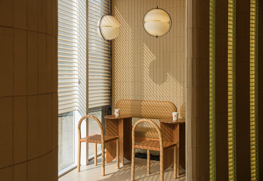 集销售、收银、包装、咖啡吧为一体的圆形岛,既凸显了独特的烘焙感,又能照顾从不同方向进入店内的顾客。