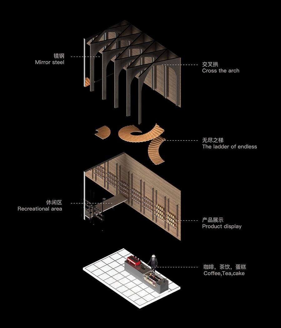 喝了杯夜猫子酒,你立刻觉得神清气爽,开始沿着盘旋盘旋的螺旋楼梯在空中漫步,一直爬到天花板,眼前展现的是一个看不到尽头的世界……当你冷静下来的时候,你看到柜台前有四个汉字,上面写着“芝麻健康”。这时你松了一口气,意识到发生的一切不过是幻觉。