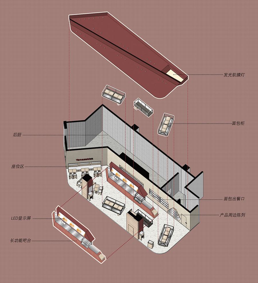 与现在的花式面包店相比,山崎一直以日式温暖为主,虽然元素上没有任何附加的照片点,但也融入了顾客的日常生活。这一时期在像大宁这样年轻而充满活力的板块,我们希望在传达山崎一贯理念的基础上,加入一些新的元素,更贴近年轻的消费群体。