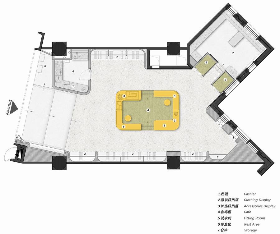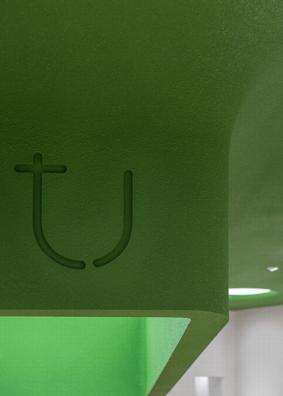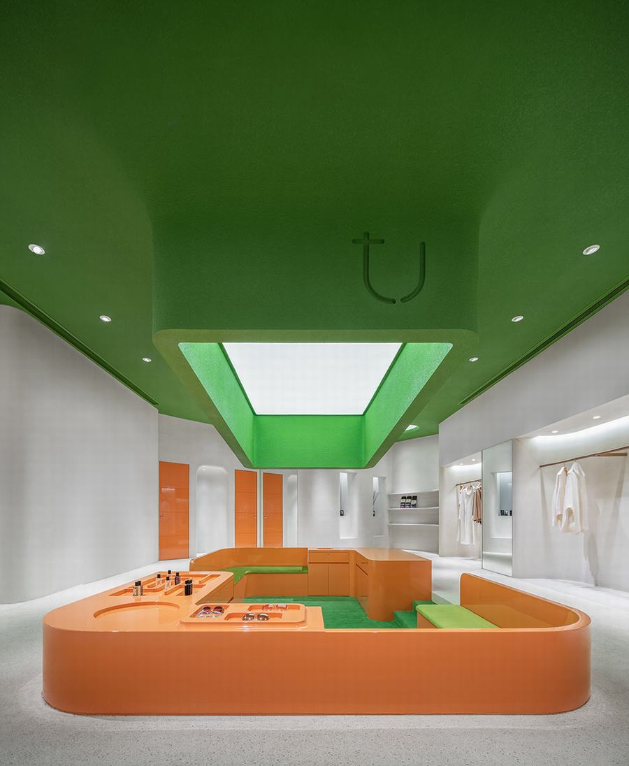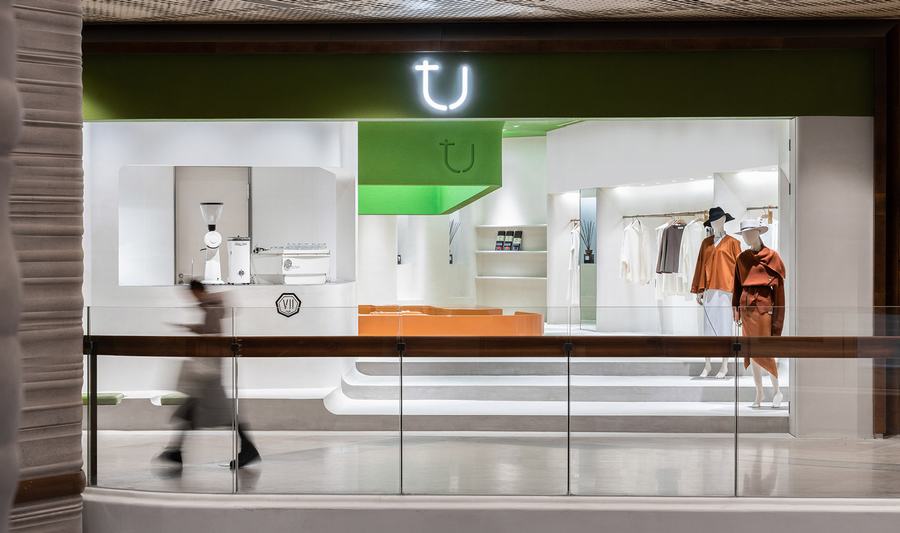 对于这个TU的新店,我们希望空间设计也能继承“千树”的理念:绿色、自然、亲和力、开放。因此,我们决定将整个室内空间作为一个户外公共空间来对待,创造一种游走于城市街道的感觉,以更加开放的态度面对消费者,重新诠释TU包容的品牌理念,欢迎每一位路过的顾客驻足。