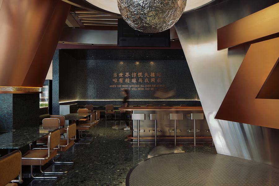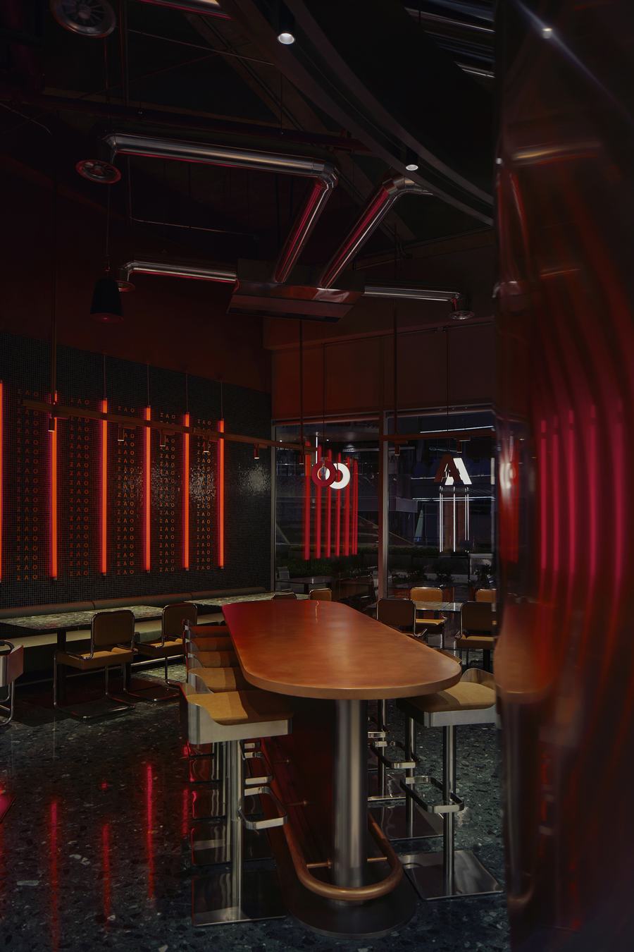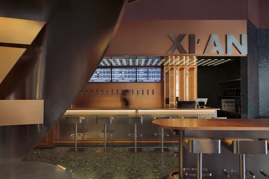 The.H坐落在历史悠久、文化底蕴深厚的古城西安。它继承了过去的经典魅力,同时融入了未来主义、前卫的元素。受啤酒酿造文化的启发,设计团队采用“棍子”作为空间叙事的媒介,努力创造一个具有独特氛围的独特酒吧和餐厅空间。