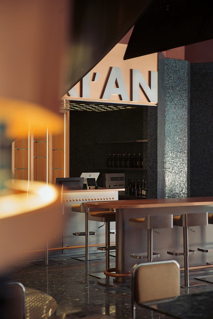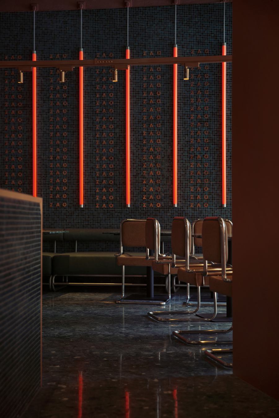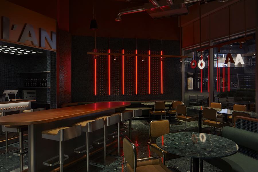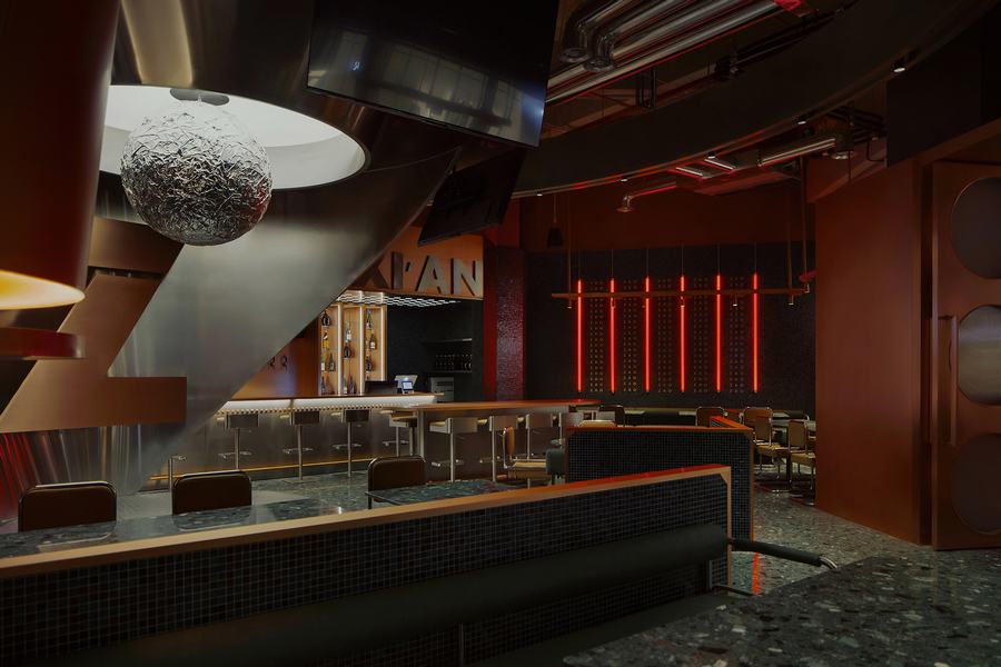 功能:它是一个酒吧和餐厅空间。空间布局看似杂乱无章,实际上是巧妙的对称交错排列。合理流畅的服务流线,既保证了空间秩序,又提高了客人的多感官体验。设计方案和精心设计的空间组织在宏观和微观层面都表现出独创性。