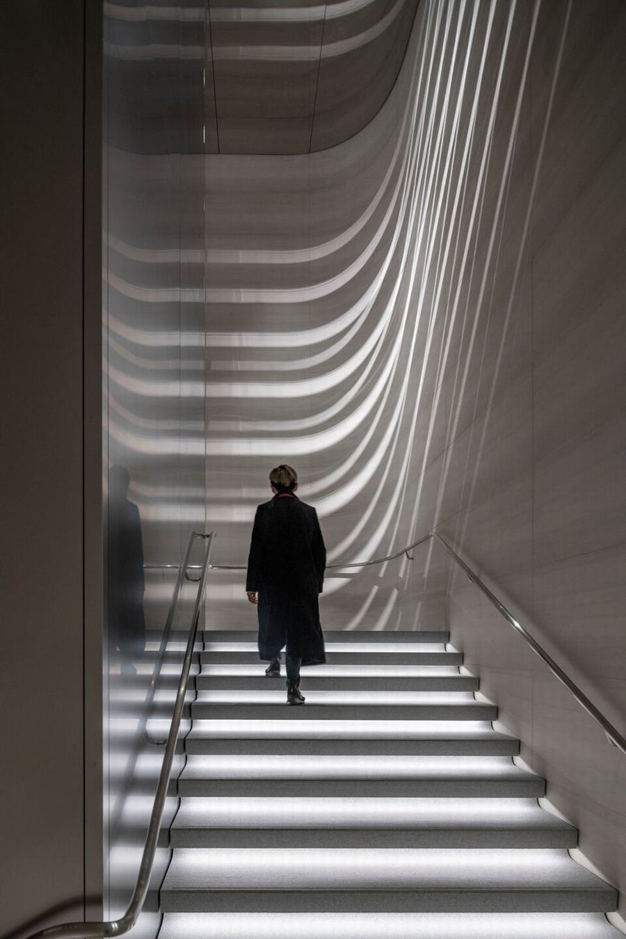 塔楼上方的结构构成了店面的玻璃,形成了一个巨大的柱廊,高性能的玻璃面板在塔的柱子之间水平跨越。在内部,商店的饰面延伸到塔楼的公共大堂空间,以提供广阔、流动的空间,鼓励多层次的流通进入商店。