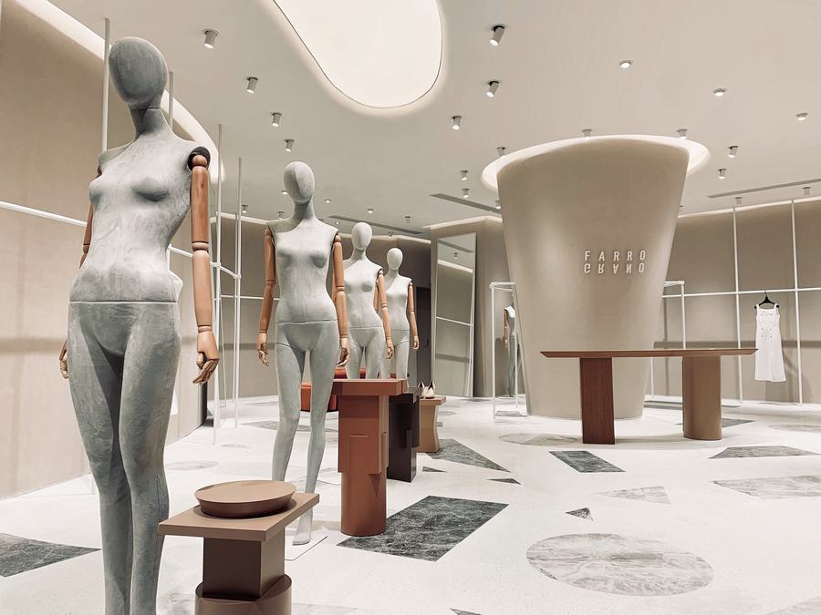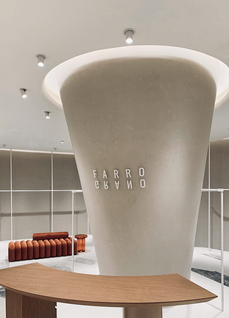 FG 2022万象城深圳旗舰店经历了从全新VI视觉识别系统到SI品牌店铺形象的全面颠覆性升级。取代了传统的FARRO GRANO标识,它过去是排成一行的,我们用对称的、细长的粗体线条代替了它。下面的文字被故意上下翻转,同时仍然保持清晰的文字。视觉效果细腻有趣,提高品牌认知度。