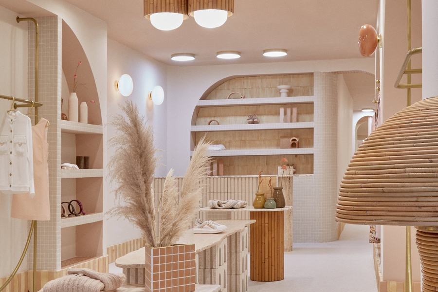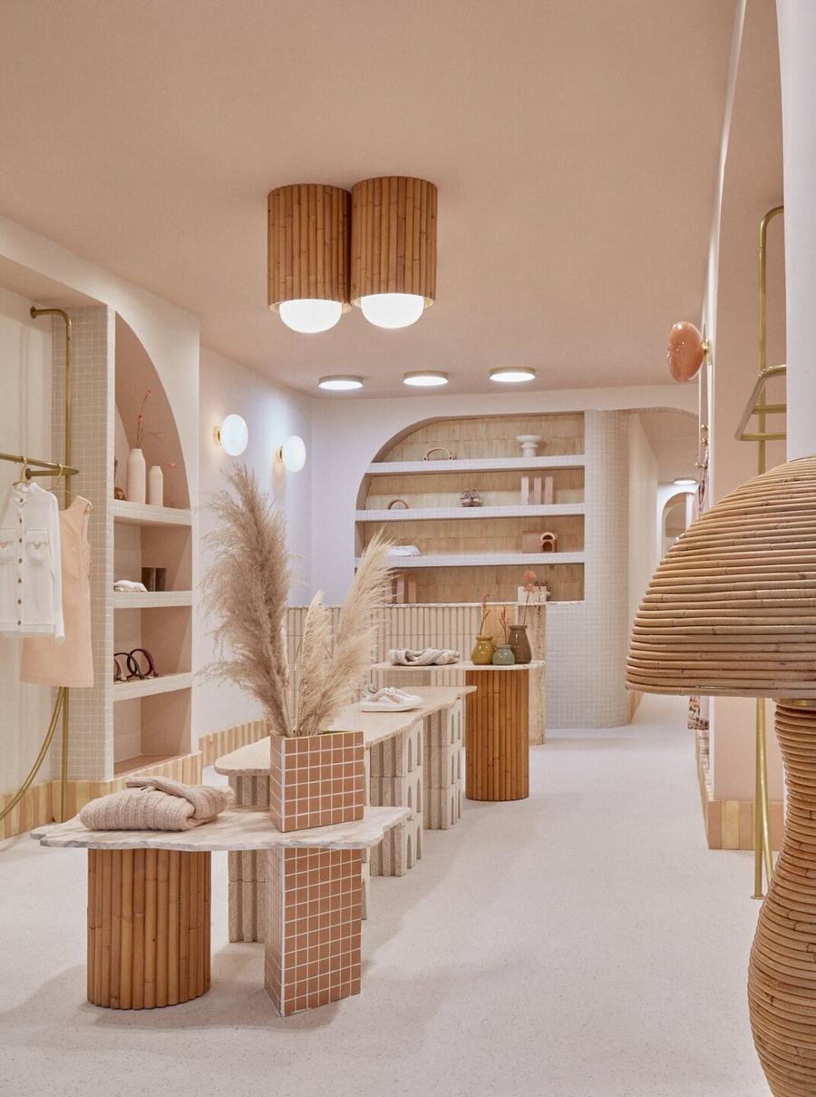 拱门、天然石头、混凝土块、赤陶土、gresite和天然藤条的隔墙,我们想反映所有手工工作,除了一些特殊的基础材料的精致,创造一个永恒的空间。进入的人将被一个融合了原始美感的和谐空间所吸引,同时通过参观者发现该品牌的众多收藏,到达一个经常光顾的试衣间。建筑和服装相互对话,讲述了传承和创新的故事。