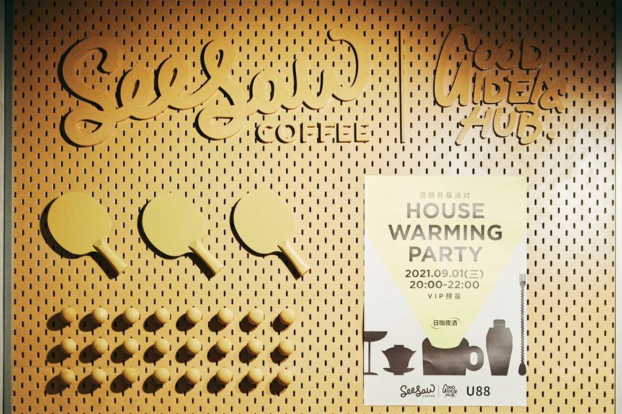 精品咖啡品牌Seesaw首家Good Idea Hub(想象力中心)正式落户上海铜仁路88号 ,首家店铺以「日咖夜酒」为主题概念,空间从日间咖啡转换至夜间小酒。Good Idea Hub 延续了 Seesaw 一贯的空间设计风格,内设咖啡和酒双吧台,白天以咖啡售卖场景为主,晚上则主打酒类产品。