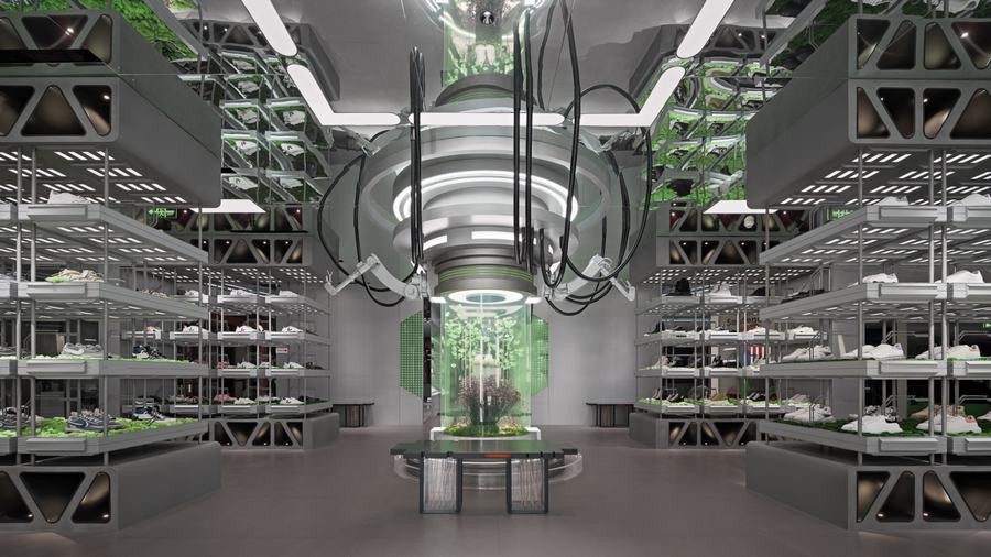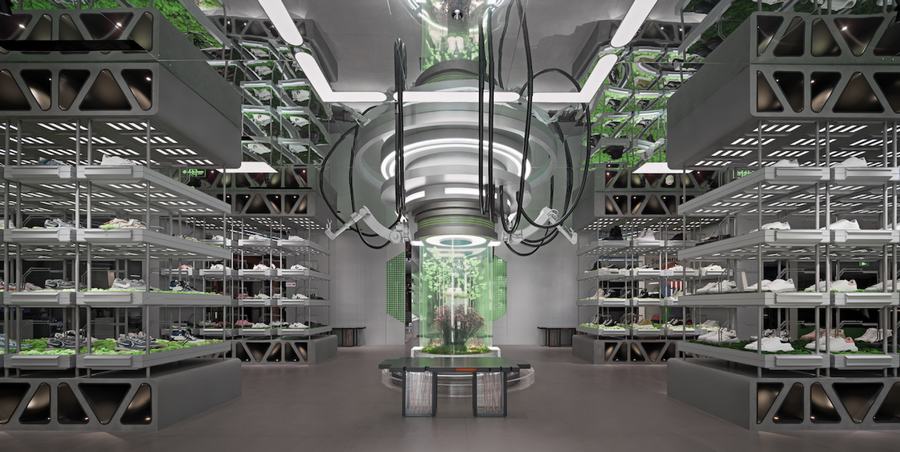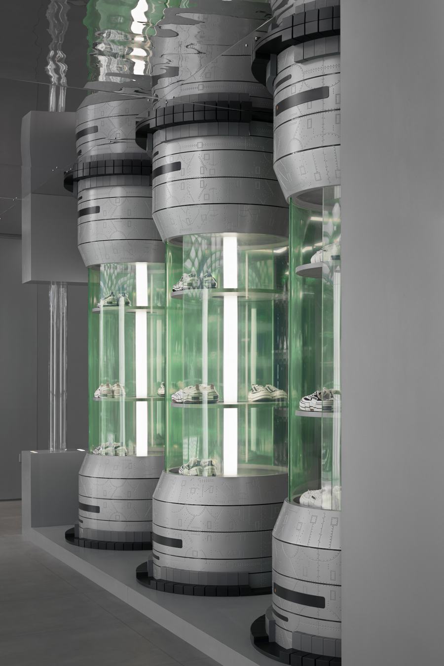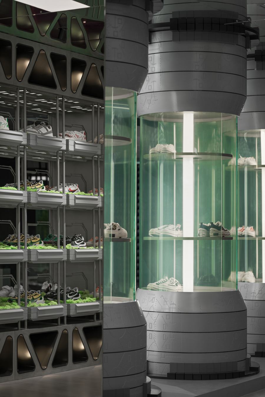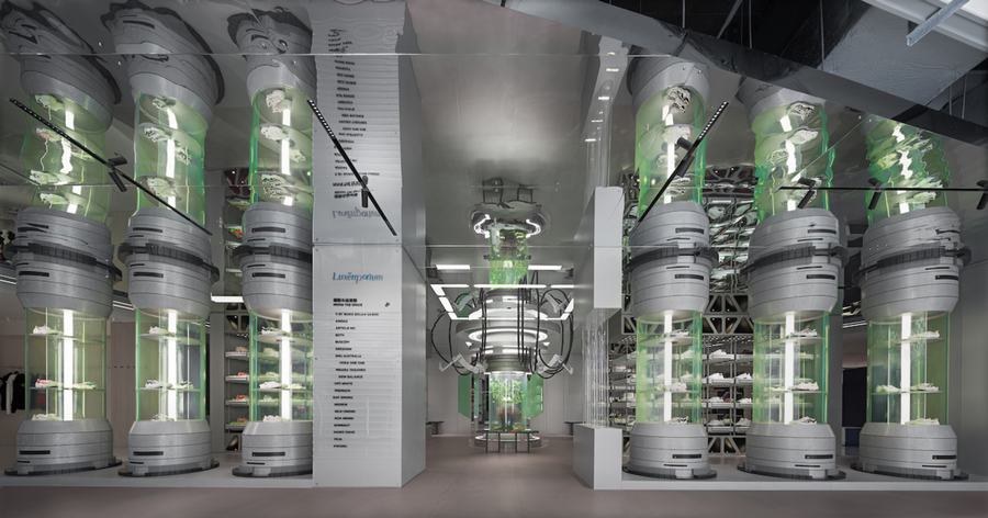 All Design Studio借鉴了科幻电影的元素,创造了一个类似实验室的环境,顾客可以在这里迷失在运动鞋的购物体验中。