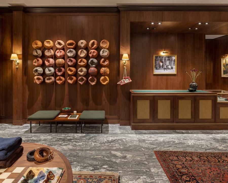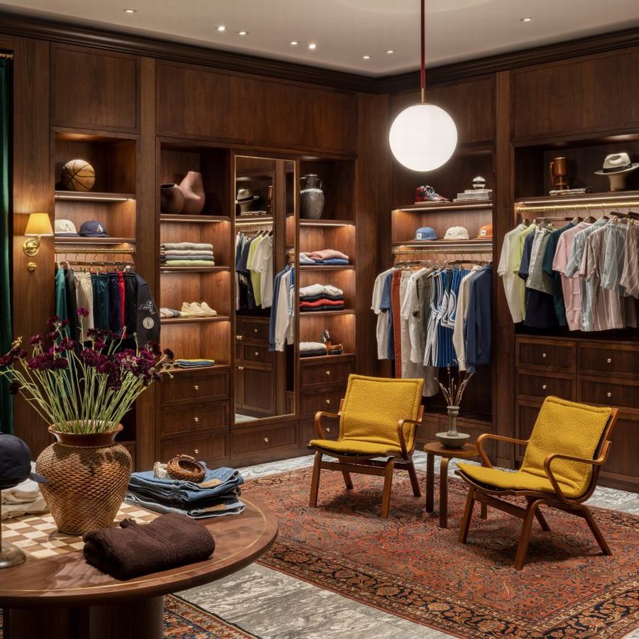这家伦敦旗舰店并没有重复 Aimé Leon Dore 在纽约的第一家商店的设计,而是旨在提供一种对比鲜明的体验。“我们将品牌环境的下一次迭代想象成一种更喜怒无常、更亲密的体验,”波萨达告诉米尚丽。“我们希望这个空间能唤起你在伦敦附近可能会找到的一些老会员俱乐部的感觉。”