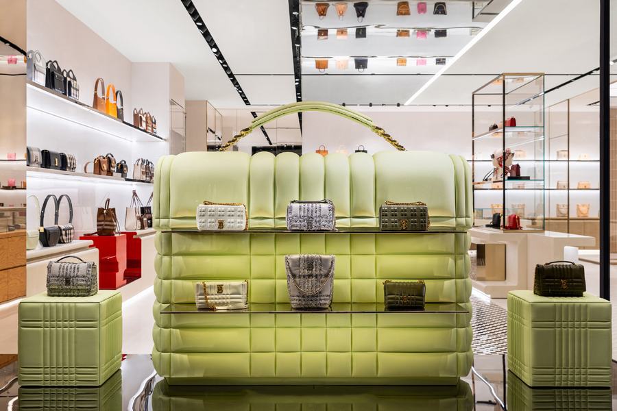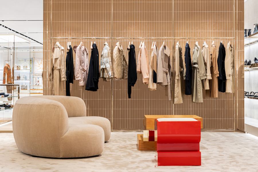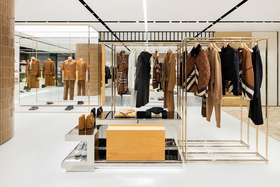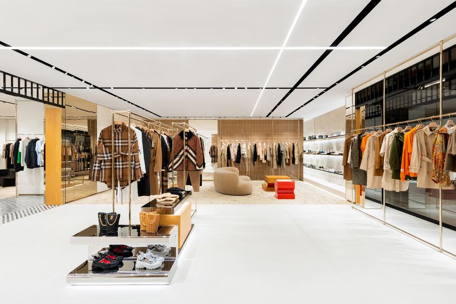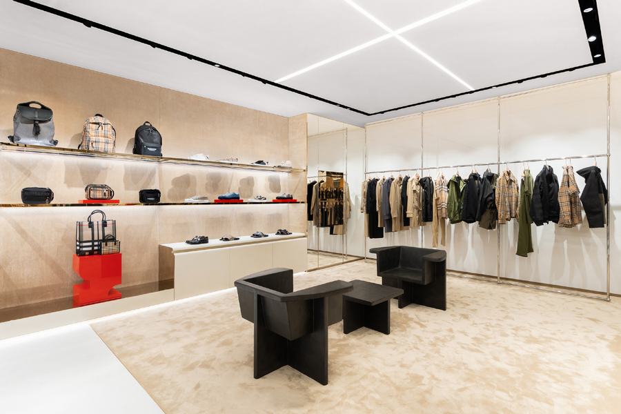 新店的设计沿用Burberry首席创意总监Christopher Bailey构思的概念,并且该店也是全球第一间铺设室外水晶面墙的Burberry专门店,彰显出Burberry经典格纹图案。