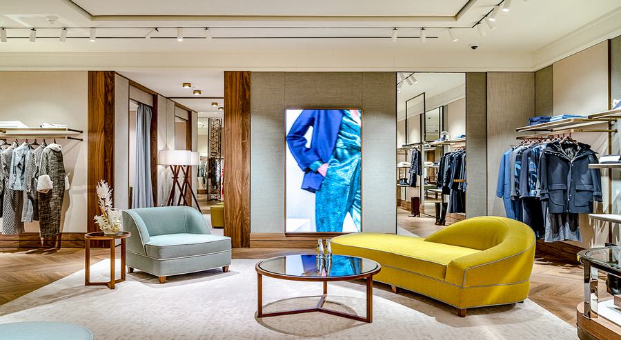翻新后的精品店面积已增至 330 平方米,Kiton Donna 拥有 80 平方米的女装、鞋履和配饰。由于简约的室内设计,游客的注意力集中在事物上:胡桃木装饰和简洁形式的柔软家具营造出亲密感。