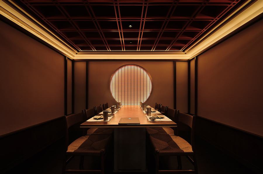 在材料的选择上,我们注重材料质感与人的关系。因此,根据居酒屋的形状,我们选择了两种材料,shoji纸和原木元素,它们具有交互的物理触感,并与钢框架围合的空间相融合。在狭小的空间里,人们感觉更亲近。与混凝土相比,钢结构作为主要材料具有连续性和清晰度的优点。因此,突出结构构件之间的联系,可以让客人更直观地感受到空间中的结构表达,从而加深印象。