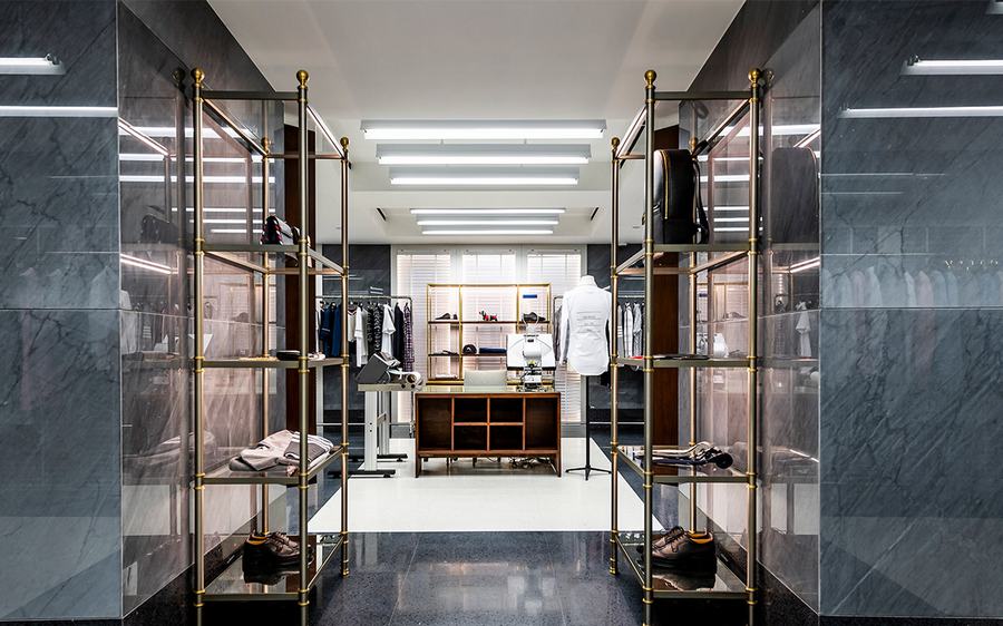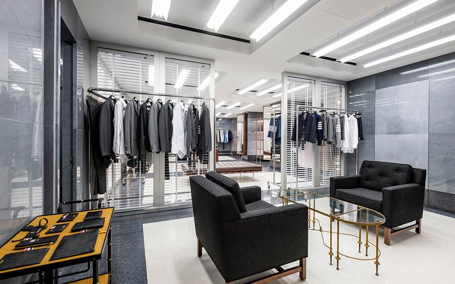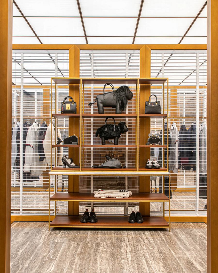 JOYCE继续与Thom Browne合作,在九龙海港城开设第一家独立门店。灰色大理石墙壁,彩色水磨石地板和明亮的白色百叶窗。汤姆·布朗(Thom Browne)标志性的中世纪办公风格空间焕发了生机。