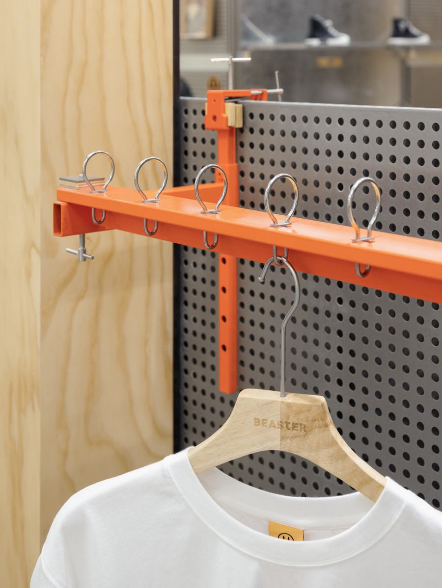 不仅是材料本身,还有它们在商店中使用的各种方式,为有趣的、吸引人的顾客体验提供了条件。不规则分布的服装产品和不同规模的展示单元打破了场地,鼓励不同区域之间的流动。Some Thoughts旨在强调“通过定制实现的独特性”,他们的设计产生了一个动态的、适应性强的空间,以迎合不断增长的品牌。