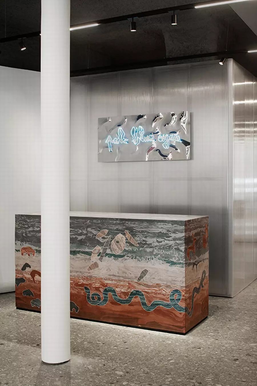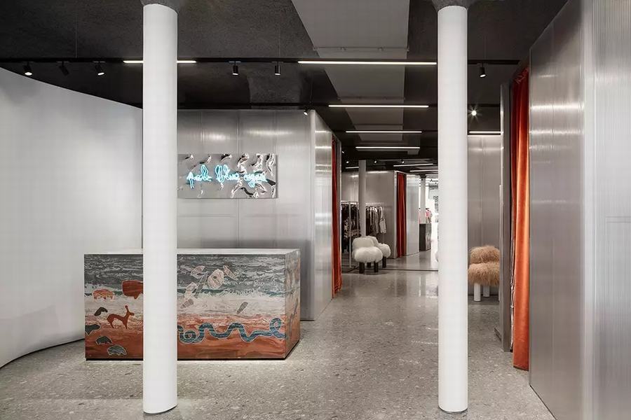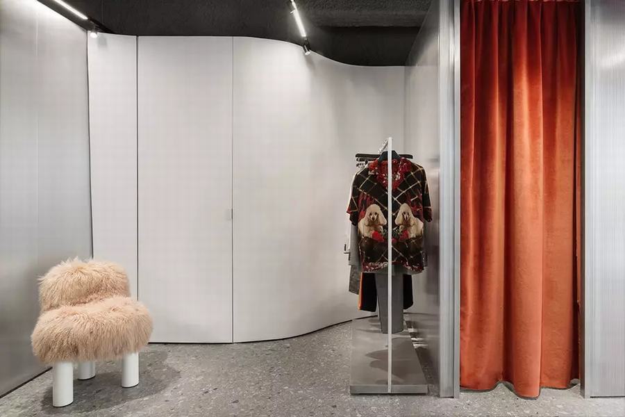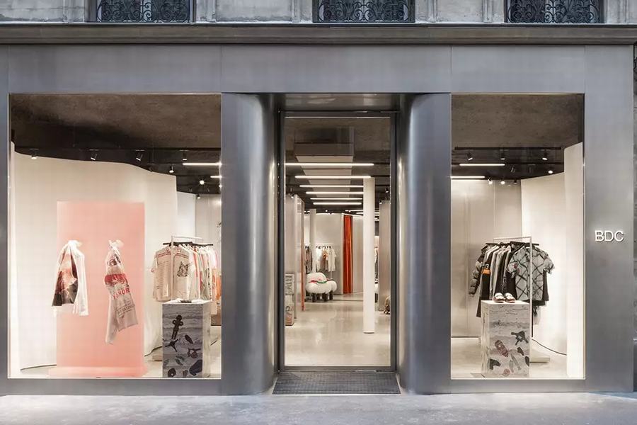 该商店由设计师和建筑师Payam Askari设计,它可以很容易地演变和容纳不同的生活方式。BDC的立面融入了社区的建筑类型,因为它是由手工拉丝钢建造的。在室内,墙壁覆盖着柔软的,像纸一样的石膏,而弯曲的元素既隐藏又揭示互补的设计细节。其中一个聚碳酸酯体量拥有艺术家Claude Lévêque的引人注目的霓虹艺术作品,而精品店也使用了Cini Boeri和the Haas Brothers的标志性家具。