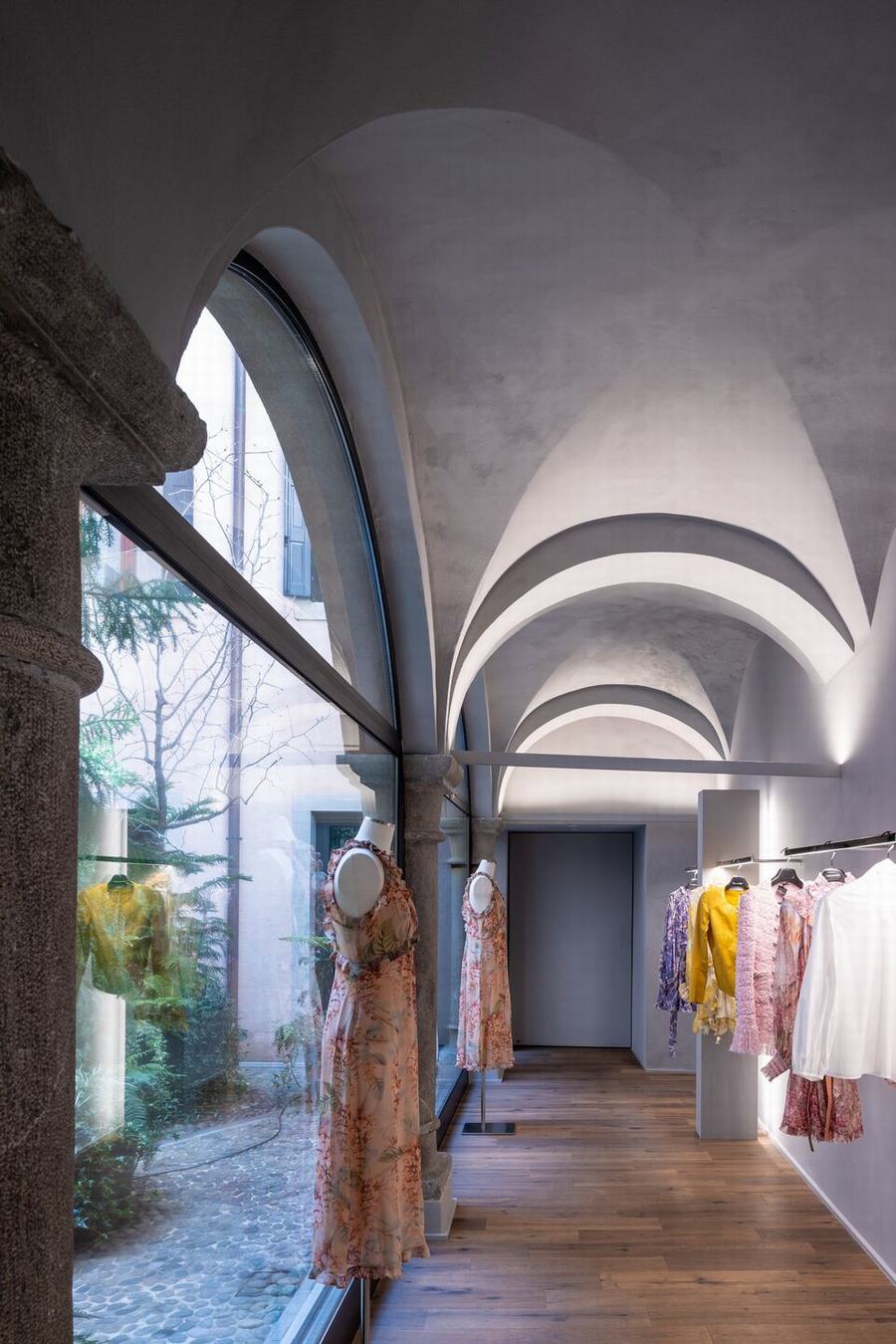 该店位于历史建筑的拱廊下,俯瞰弗留利威尼斯朱利亚乌迪内的历史中心,是东北部以及附近的奥地利和斯洛文尼亚的奢侈时尚领域的一个参考点,经过全面翻新,为客户提供一个独特而令人惊喜的内部场所。