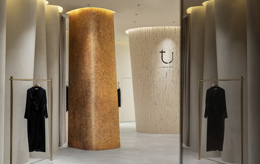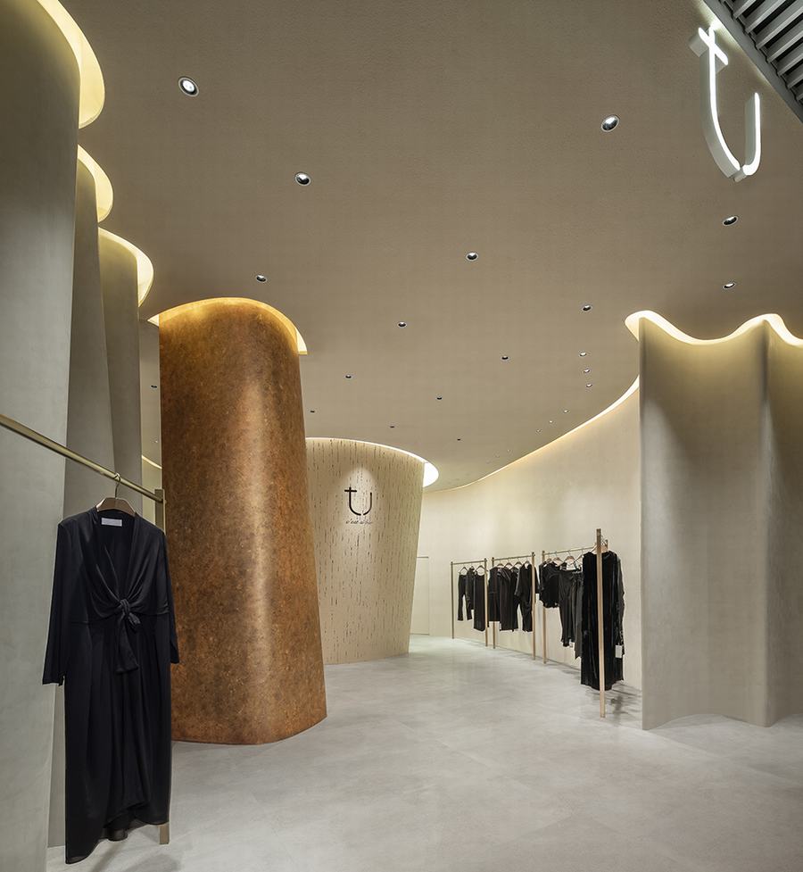 这是Tens Atelier为TU创作的第四家门店形象,可以视为TU与Tens Atelier合作的起源。TU一直在传达品牌的当代女性形象的理念,不咄咄逼人,不妥协,风格上不拘束,温柔但也有力量。