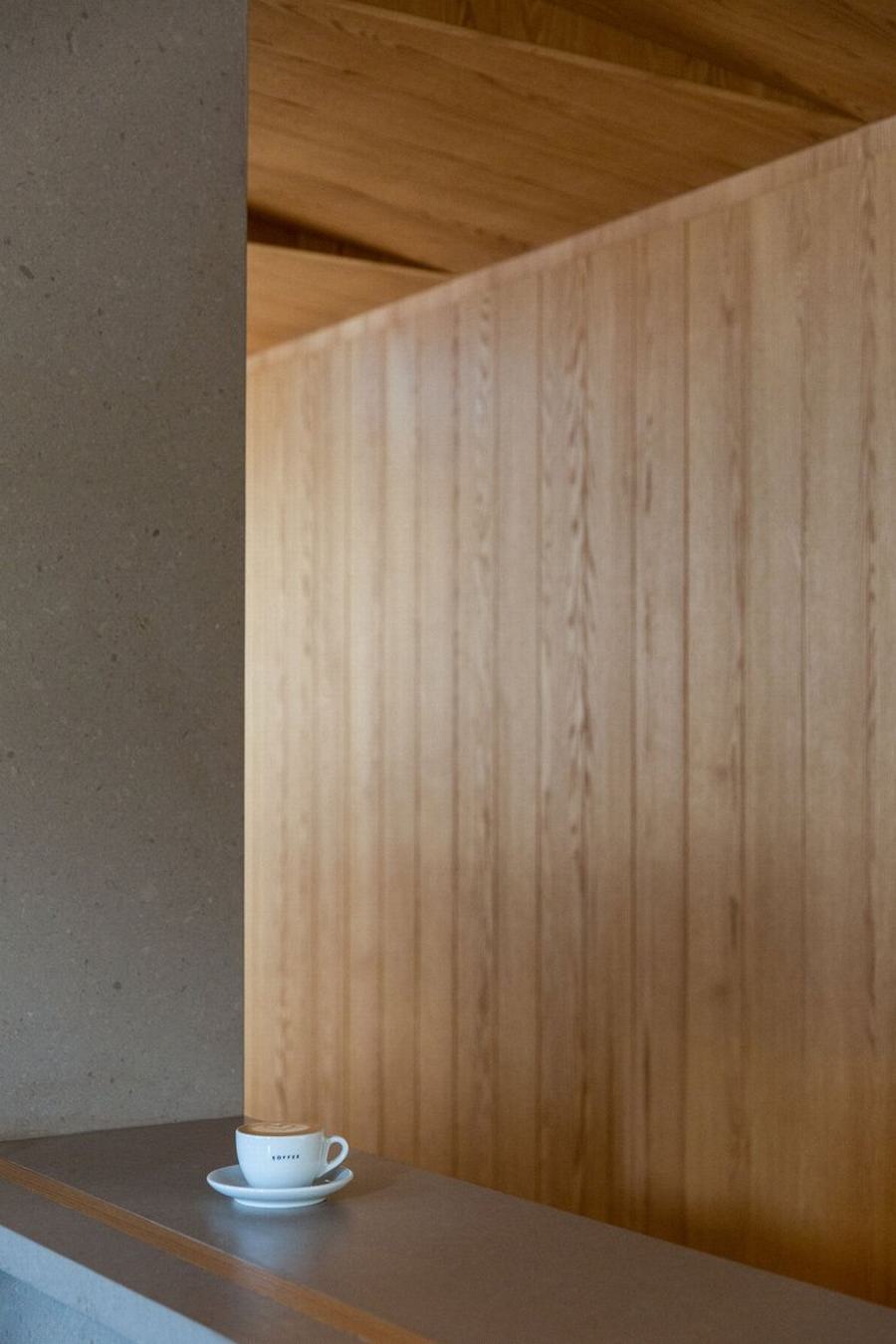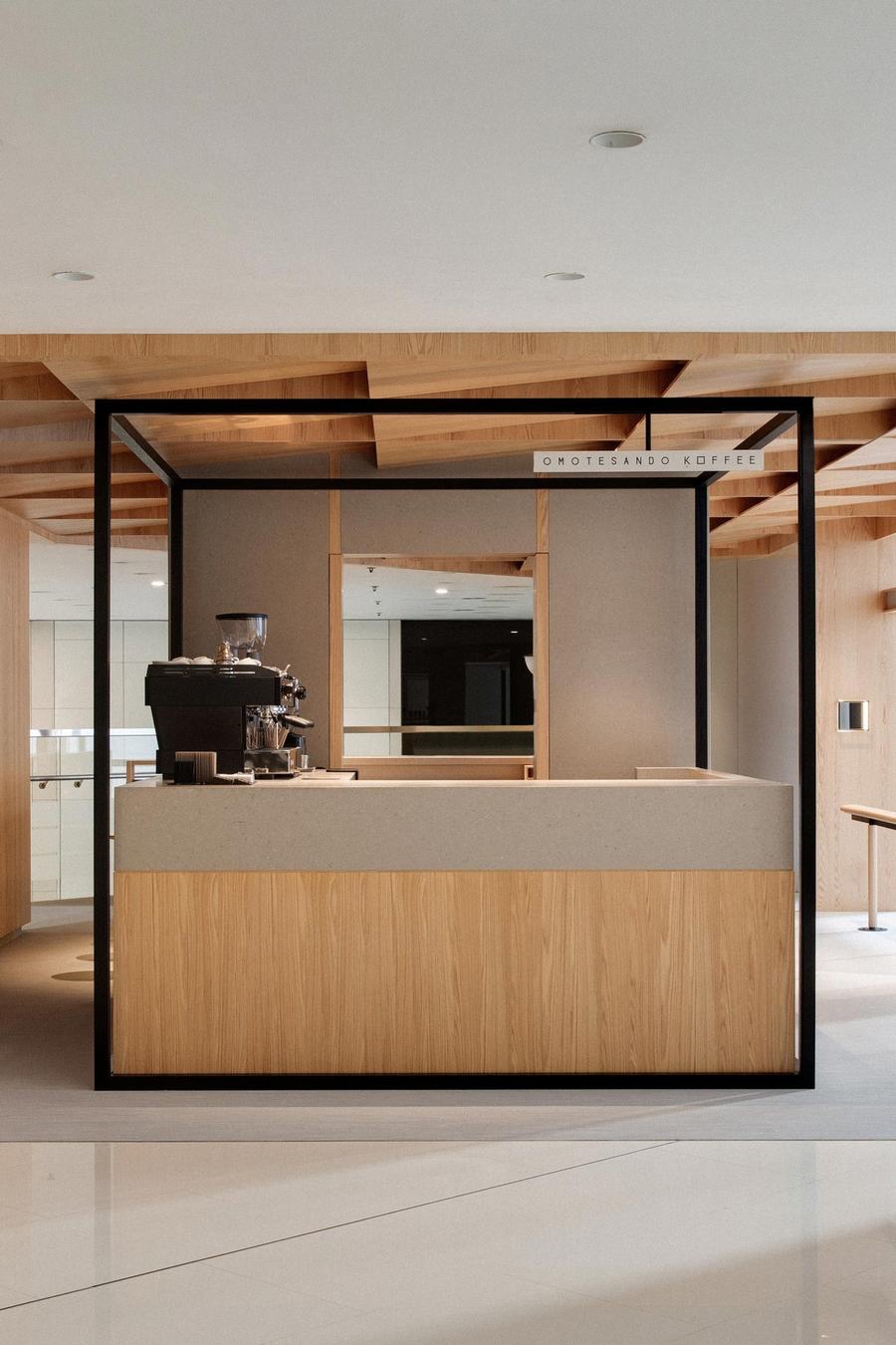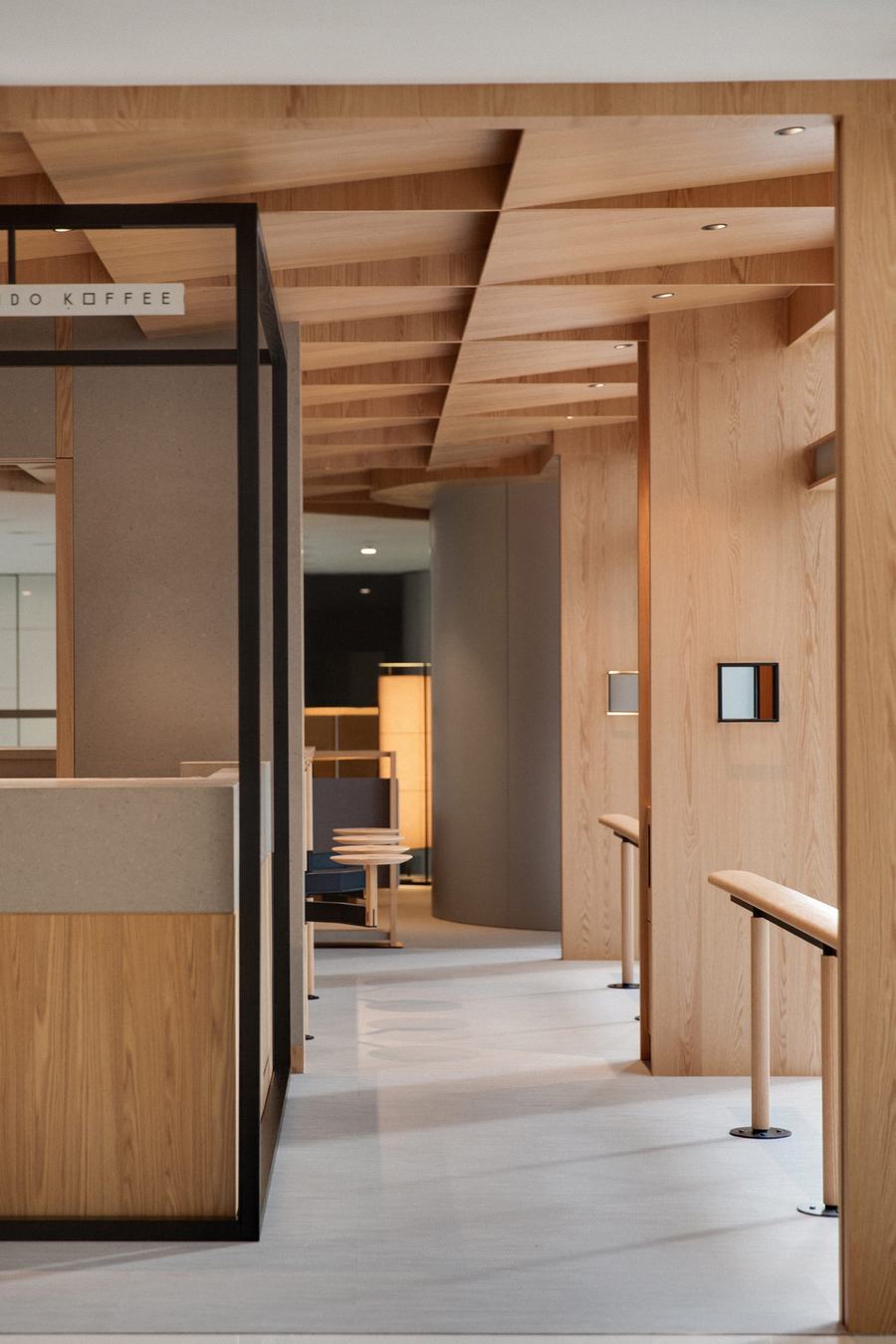Wilson Lee:倾斜的网格天花板是另一个设计亮点。我们设计它不仅仅是为了看起来漂亮,也是为了反射外面的阳光,把温暖的光芒投射到咖啡馆里。它让你感觉就像在舒适的日本馆下享受一杯咖啡,远离繁忙的购物中心。