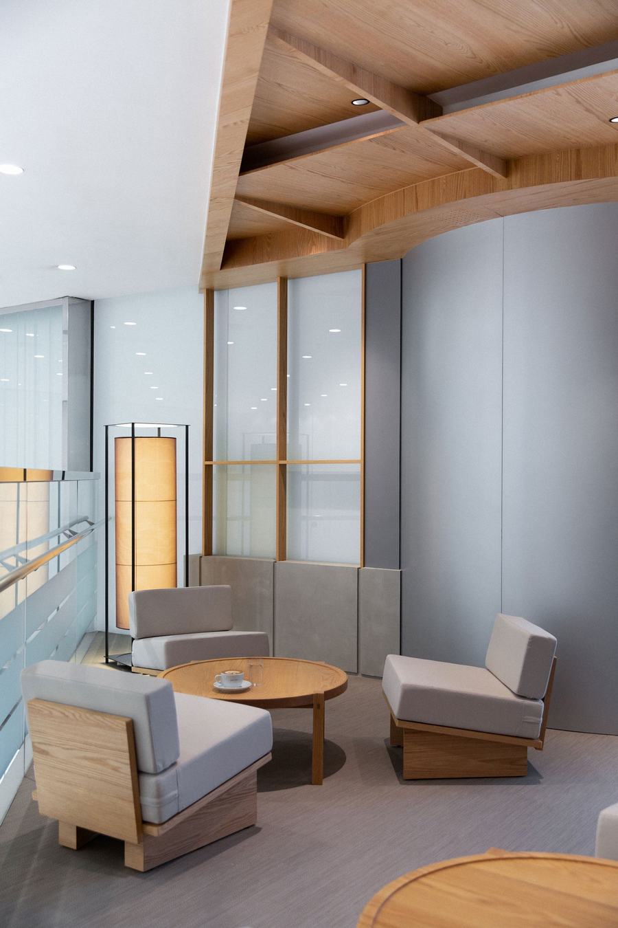 Wilson Lee:我们为这个项目量身定制了所有的家具,从躺椅和咖啡桌,到线性站立吧台和特色咖啡区周围的转椅。空间的一个亮点是微妙的木材和金属细木工细节。例如,转椅的设计采用了圆形木板和倾斜的金属结构,以便在座椅和吧台之间提供额外的腿部空间。