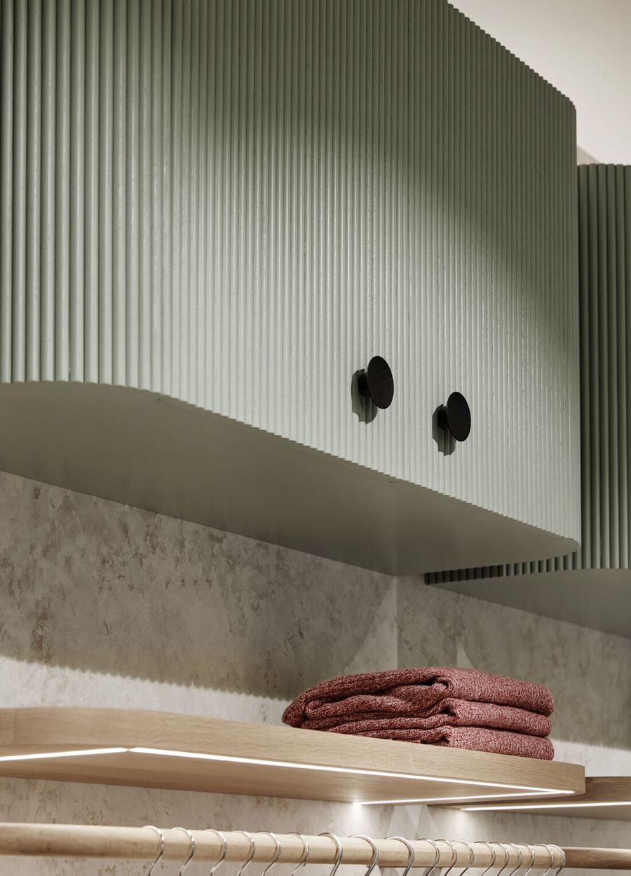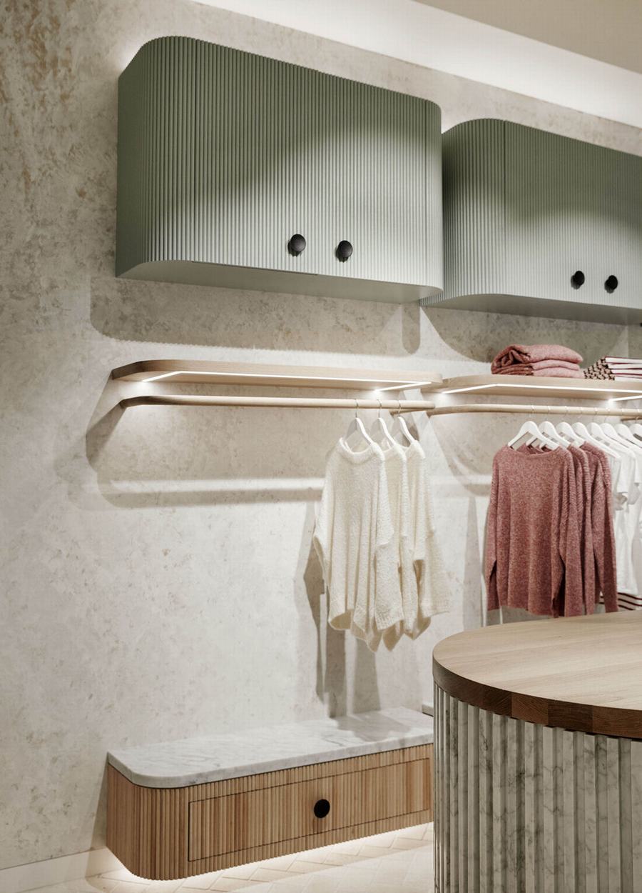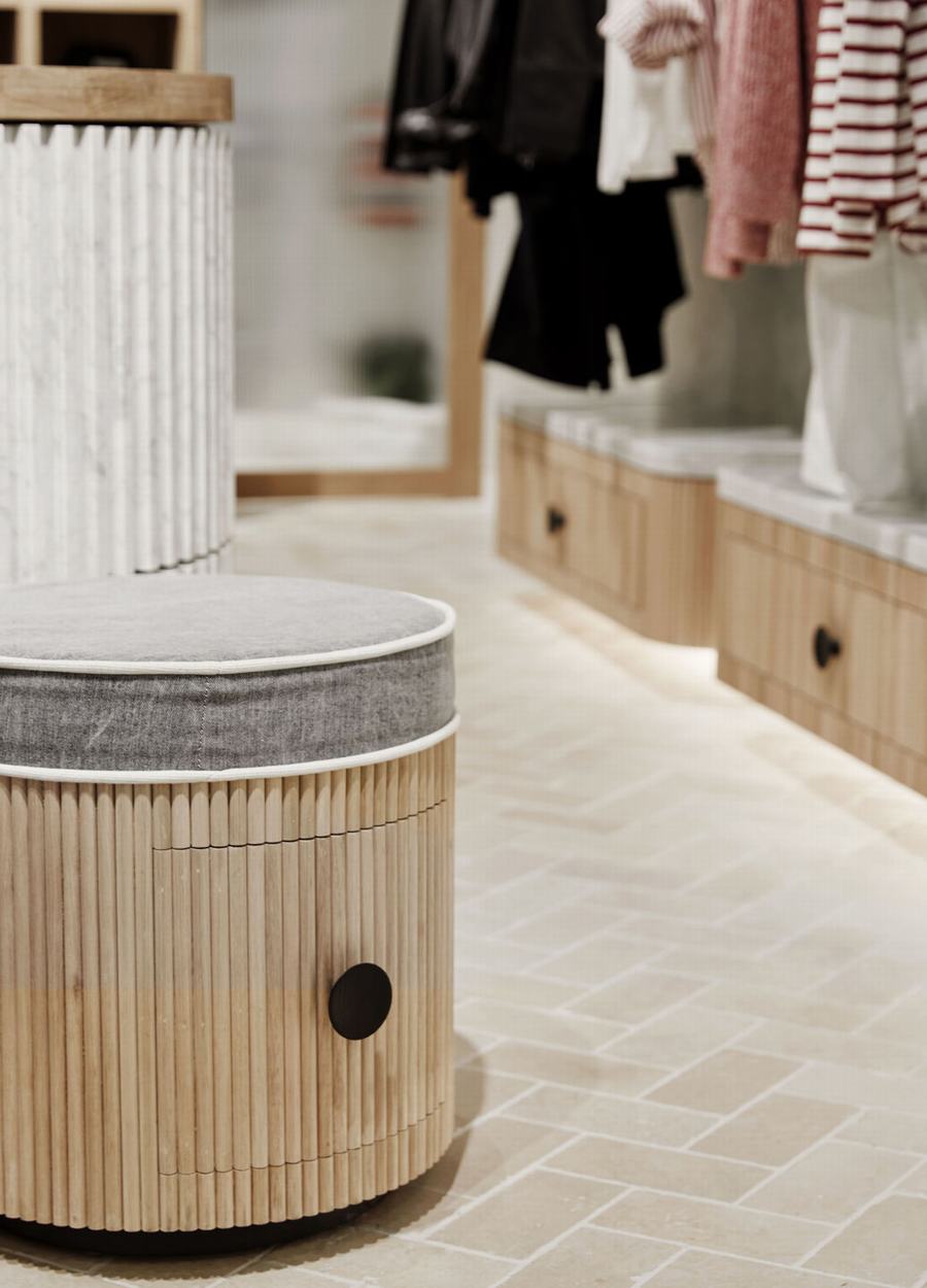 Our design for Jag (APG & Co) is an expression of opposing elements: distressed but clean, modern but energetic, raw but polished. Fluted Carrara marble counter and a curved steel shopfront gave purpose to this corner site. Curved tambour cabinets and oversized ebonised door knobs gave a nod to the brand’s 1970s heritage, whilst looking to the future.