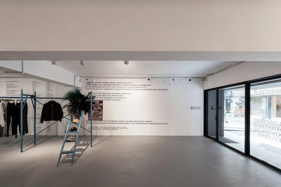 将街头不被约束,自信展现自我的欧美风格作为设计灵感, 以细微的剪裁设计与布料的品质,成为结合高奢与街头时尚的媒介,打造品牌专属牆面完整描述及展现CHOIR的品牌起源故事。