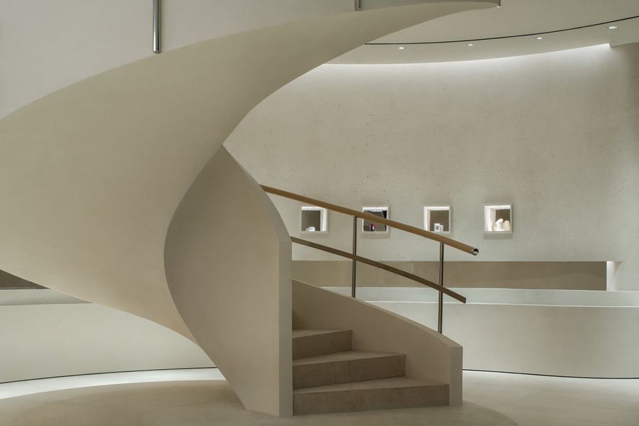 Tommy Yu: 我喜欢二楼的石墙,它表达了项目的整体概念,并创造了自然的分区,唤起了经典的橱窗展示。我们还喜欢旋转楼梯,它以其美丽柔软的形状固定在一楼。