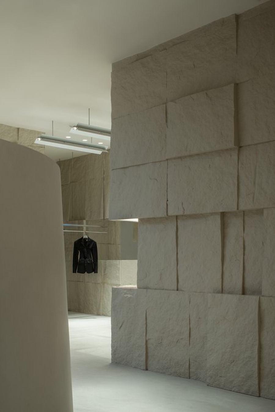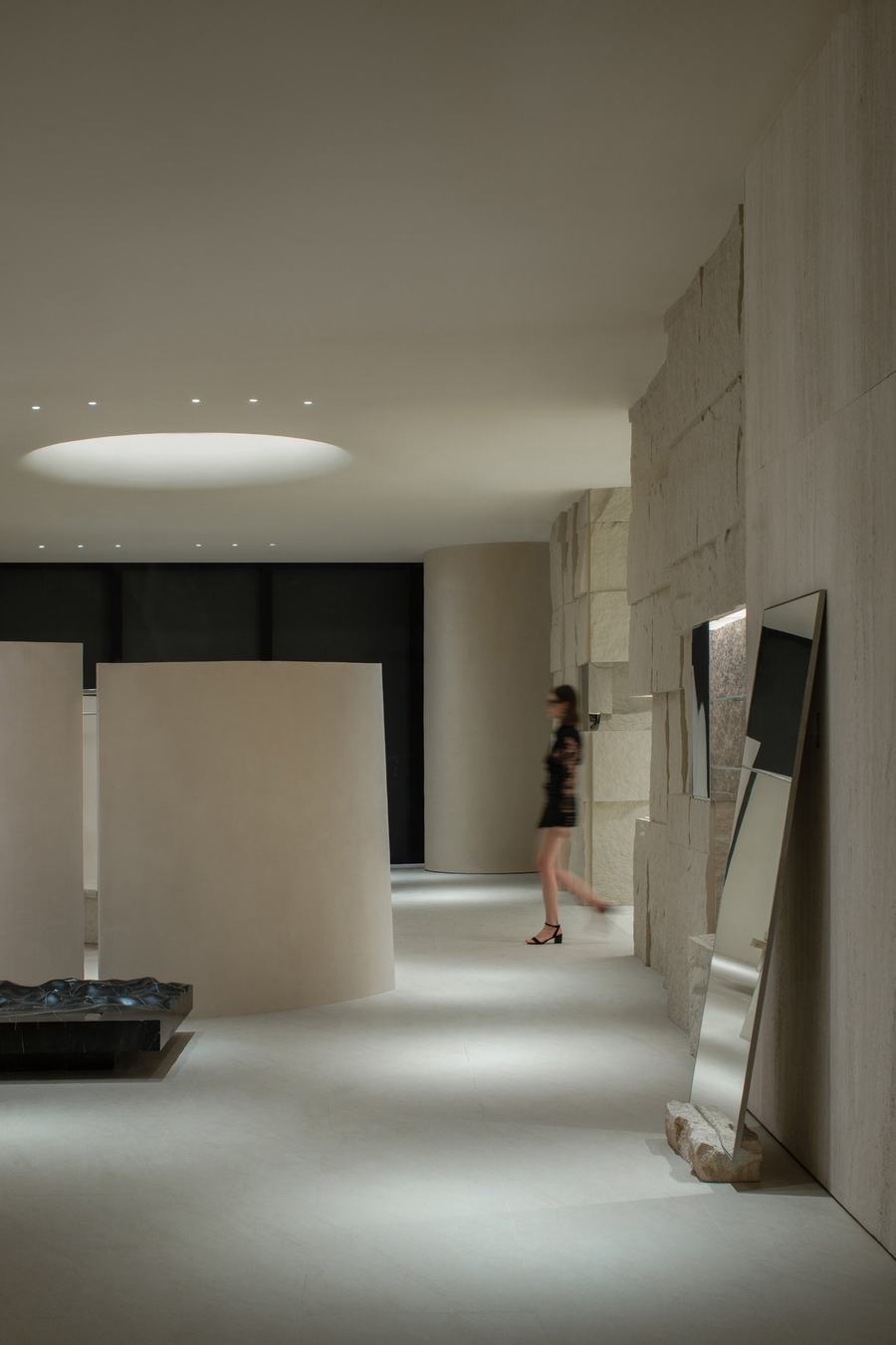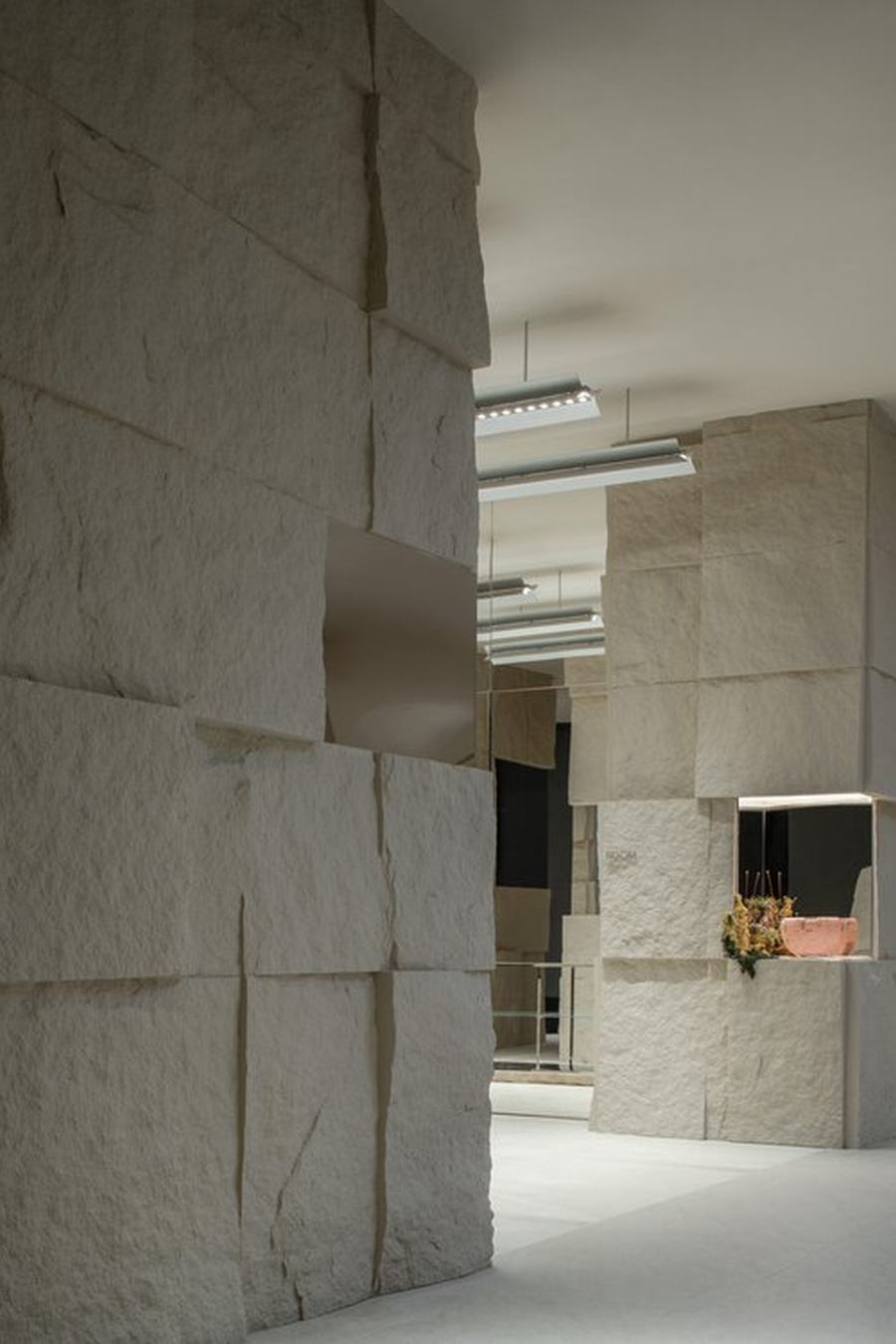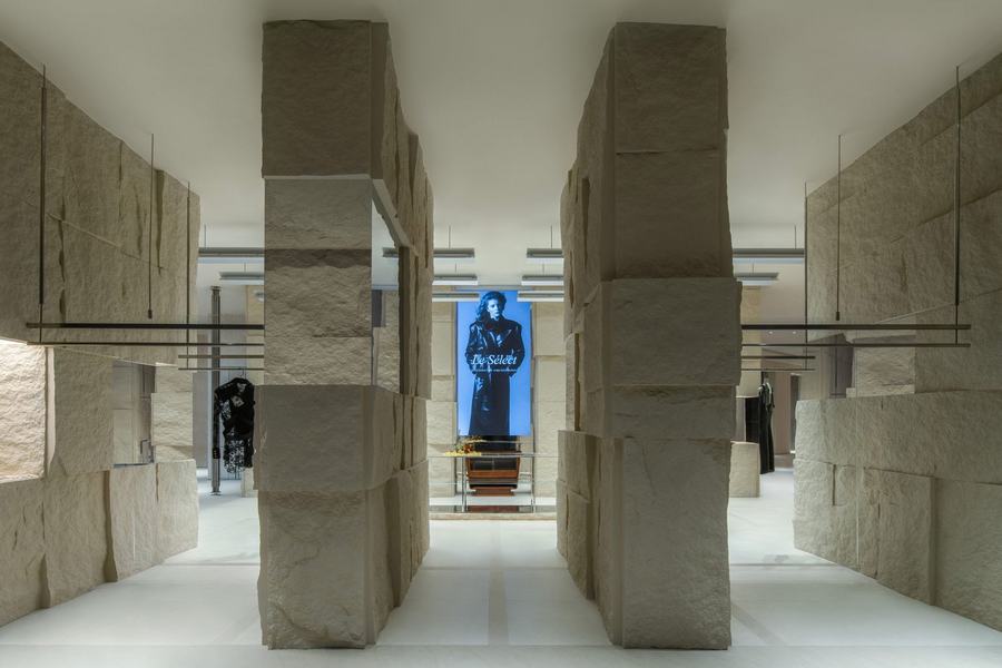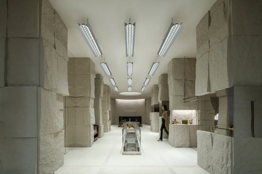 Tommy Yu: 我们用有限的材料来设计这个项目。二楼的主要零售区域由几排粗糙纹理的天然石墙定义,这反映了矿山的概念。