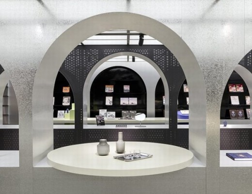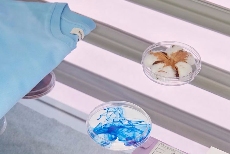 安装在巴黎装饰艺术建筑一楼明亮通风的地方,我们创造的空间骨架简约而永恒,为品牌标志性的明亮色彩和每个季节变化的剪裁提供了中心舞台。秉承其作为可持续纺织品材料驱动创新者的身份,我们的中性色调发挥了实验室美学,使用由清洁切割的玻璃、铝和由压缩回收纺织织物制成的耐用圆形材料制成的固定装置。