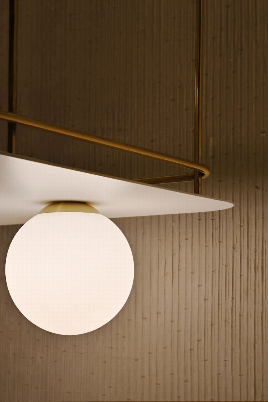 室内设计将我们带回到20世纪20年代的装饰艺术运动,重新诠释并赋予新的意义,在颜色和几何之间产生了基于对称和平衡的构图。不同组成平面的插入产生了深度的一个方面。当观众接近这个地方时,元素分解,给小空间以速记式的深度。