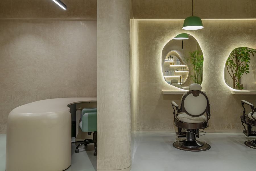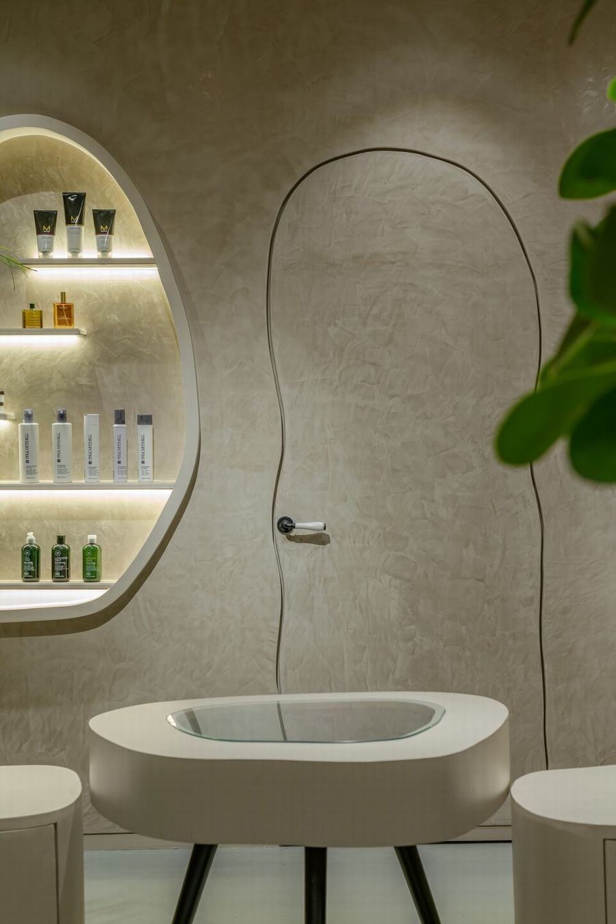 由于精神倾向,设计师一直喜欢玩这些概念,使用户能够通过他的设计体验那种明确的感觉。嵌入豪华,每个空间都被精心设计,以吸引别致而复杂的氛围,沉溺于创造性的细微差别。服务是紧凑和隐藏在整个空间,这是棘手的,但一个胜利。该空间计划将两个带有洗头站的男性小屋,两个女性小屋,一个咨询室,一个浴室,一个蒸汽室,一个理发站,一个快闪美甲区,一个接待区,一个食品储藏室,一个员工洗手间纳入空间。该项目是为太空带来平衡和活力的证明。