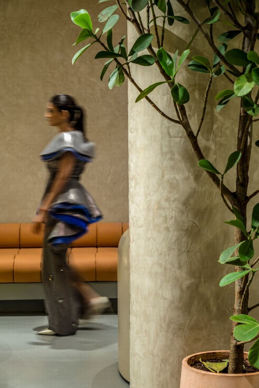有意识地使用无缝环氧地坪,避免接缝或灌浆,使地面整体和谐。墙壁消除了定义空间的边界,以相同的灰泥装饰与天花板融合,从而创造出无限空间的视觉,没有边缘和限制。这里的想法不是在这些连接处给出直角,以消除定义空间的边界,敦促用户不要被限制在人们所想的盒子里,而是在无限的空间里有大梦想。
