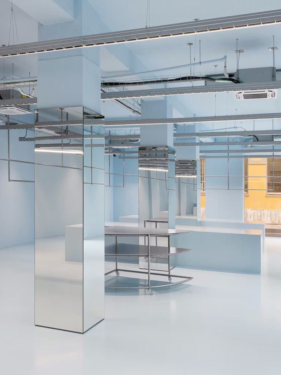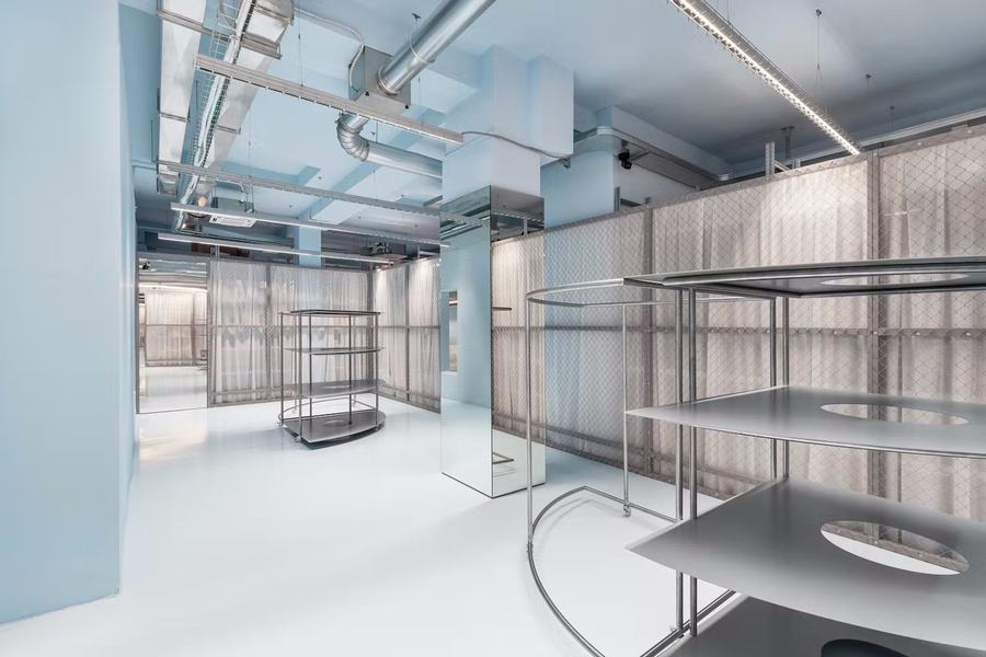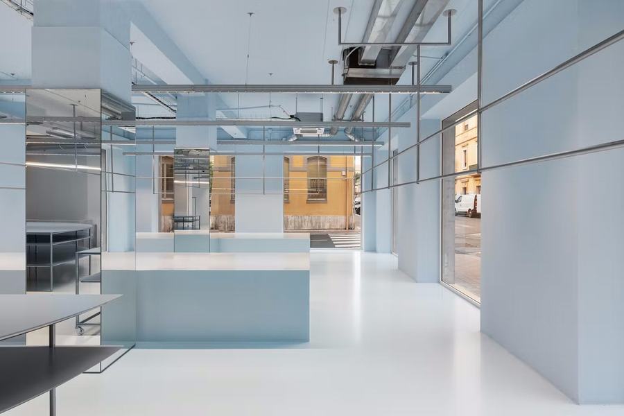 浅蓝色系的极简服装店设计 2023 年 3 月 23 日 该项目采用了浅色天空蓝作为空间的主色调,整个空间干净素雅,冷色调给意大利这座炎热的小镇带去了些许空间的凉爽体验。冷色和光滑的表面,更自然、更有质感。 空间中浅蓝色树脂均匀地覆盖所有表面,让表面摸起来冰冷和光滑。 女装店铺设计店铺设计服装店设计极简服装店设计男装专卖店设计男装店装修 You Might Also Like 香港3 flagship电子产品店设计 2014 年 7 月 17 日 日本的顶级品牌 Snow Peak北京SKP首家 限时快闪店Pop-Up Store 设计 2020 年 9 月 21 日 开在森林里的复古买手店 2019 年 9 月 21 日