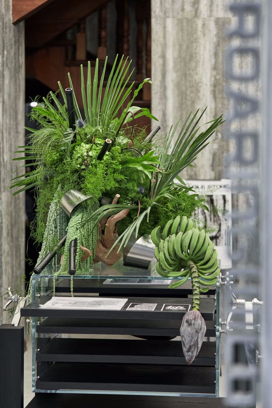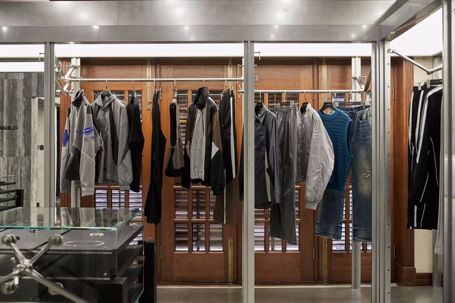 店铺二楼展示的全部是ROARINGWILD的支线产品 ARCH, 整个概念空间的陈列围绕 ARCH 本身的新锐性、实验性,设计师在空间中采用大量工业金属材质进行二次创作,强调ROARINGWILD品牌更为显性的概念表达。