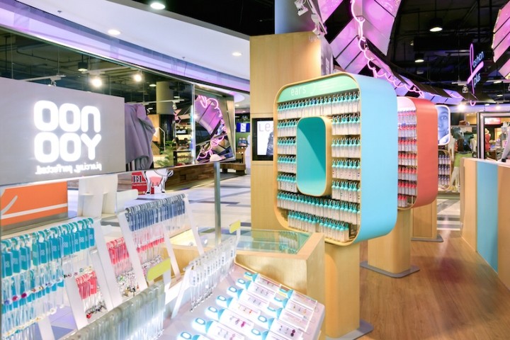 设计概念的起点是Non-Objective设计工作室开发的一种新的企业标识,在我们看来,这是非常工业化和技术化的。我们将这些联系转移到室内,快闪店的想法非常适合它的实现。我们使用了在建筑工地日常可以看到的材料:充气块、石膏石膏板轨道、混凝土、罗斯带、镀锌钢。在我们看来,这些简单的技术材料非常适合新的品牌标识。