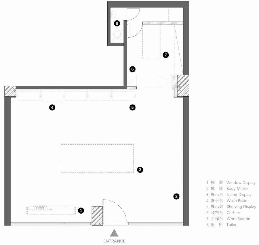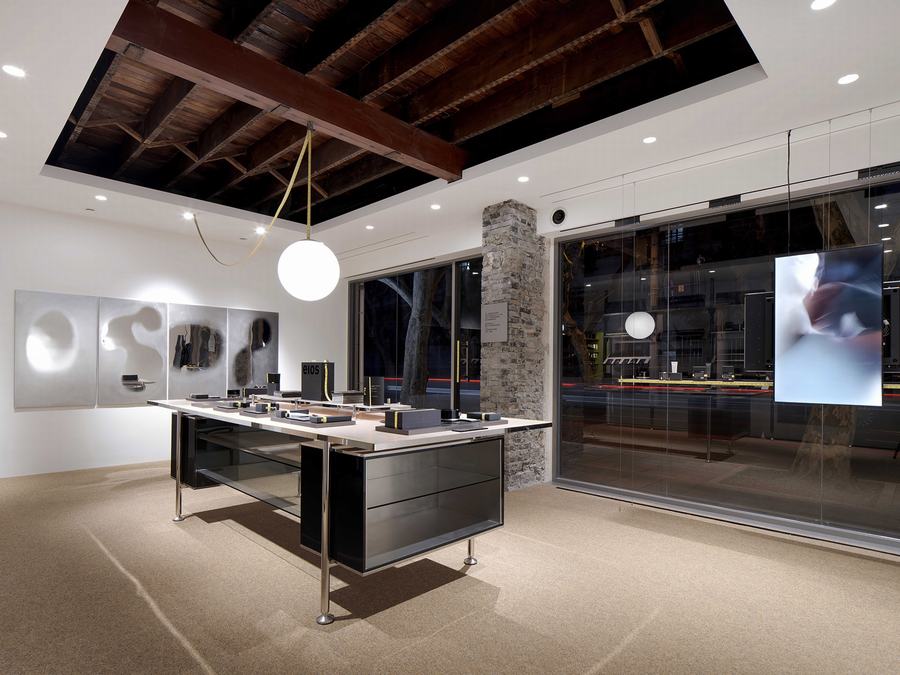 空间中的路线是开放流动的;三米长的岛屿作为视觉中心,自然形成了迁徙路线。顾客从进入商店的那一刻起就可以根据自己的直觉自由地向左或向右浏览,在保持视野开阔的同时增加了空间体验的趣味性。