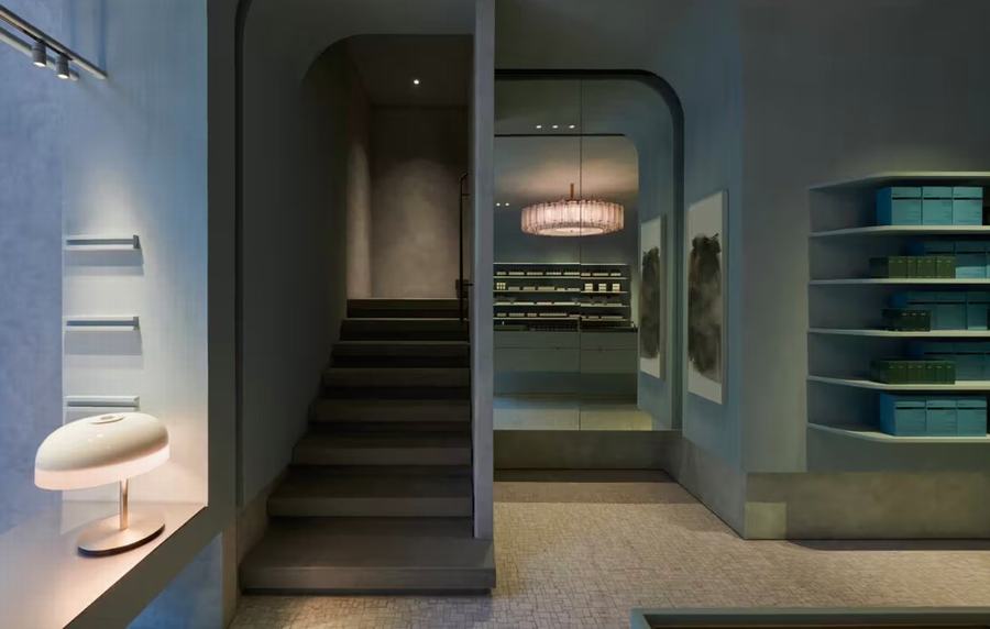 新店借鉴了传统香港建筑元素,结合现代设计手法,巧妙地运用了铜、钢、木材等质朴高贵的材料。充满光线的室内空间不仅让客人沉浸在一种宁静的氛围中,还提供了一个欣赏产品并体验品牌理念的绝佳场地。进入店内,大面积的镜子为空间增加了视觉层次,充满舒适感的木制家具及绿植营造出宾至如归的温度.