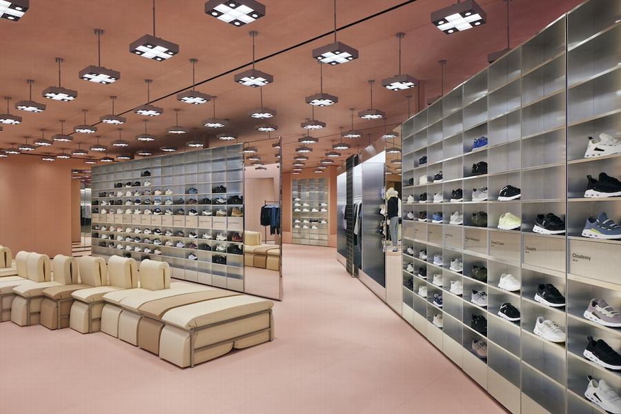 该商店旨在将性能与设计无缝融合,为运动员和爱好者提供独特的体验。On联合首席执行官兼首席财务官Martin Hoffmann强调了迈阿密在将性能与设计结合起来方面的重要性,与On的品牌形象保持一致。商店的设计灵感来自迈阿密的自然美景,使用泥土色和纹理水泥板来捕捉迈阿密海滩的精髓。它最突出的特点是“魔法墙”,一个八英尺高的结构,可以立即试穿On的最新鞋,改变了通常的购物体验。