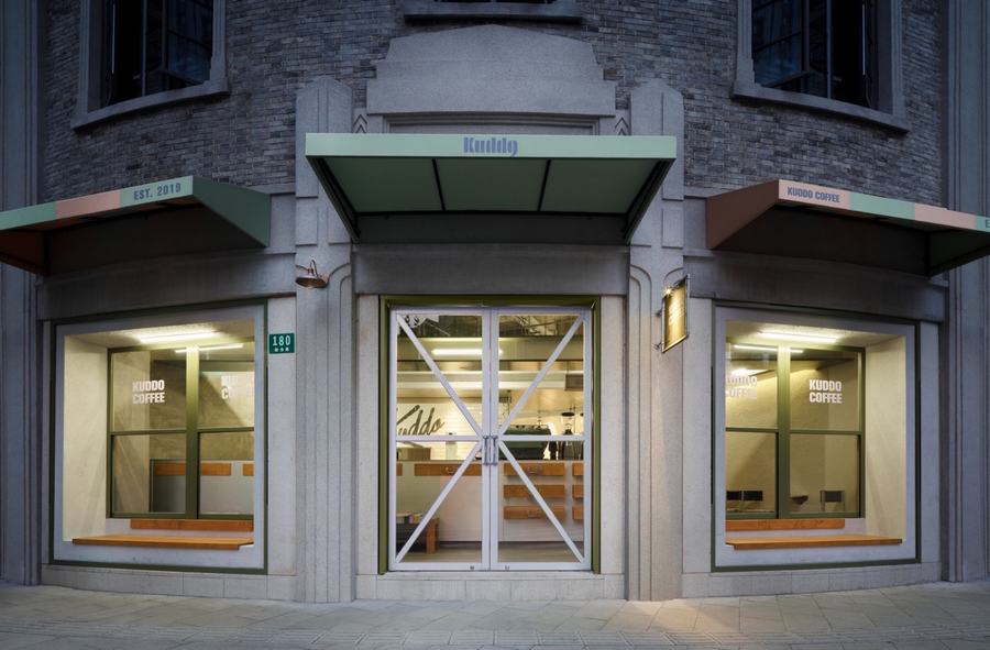 商店的外立面完美保留了石库门的门楣,展现了历史美学的象征。两侧的内置窗台座椅为行人在街角提供了休息的空间,让人们可以静静地欣赏街道上凌乱的电缆和摇曳的树影,感受到上海独特的城市风景。