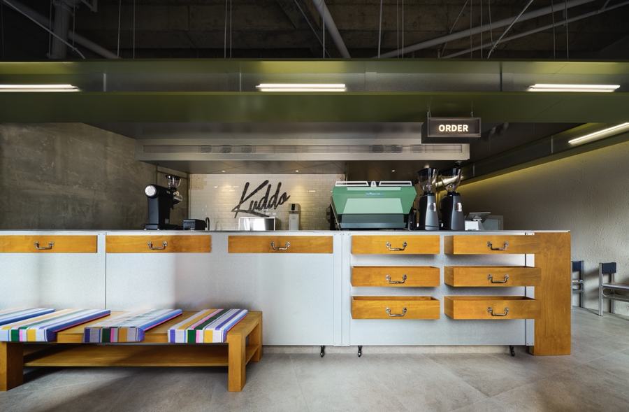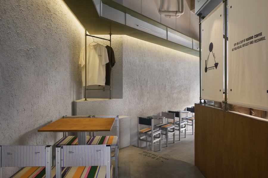 乘客区的彩色座椅与回收的塑料编织袋和成品家具有趣地结合在一起,创造出轻松活泼的视觉焦点。这些座椅都是手工制作的,每一把椅子都注入了手工制作产品的意义,就像咖啡一样,为顾客提供治愈疲劳的体验。