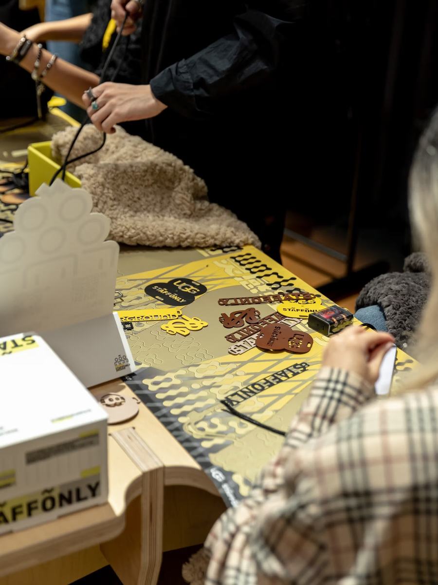 除了精彩的碰球竞技赛,参与活动的人们还能在中场休息时体验UGG x STAFFONLY束口防尘背袋WORKSHOP。这个创意工坊不仅秉持着可持续和环保的理念,更利用服装生产剩余面料来制作包袋,同时还提供DIY包袋皮件的机会,所使用的材料也都是可降解的,为环境保护贡献一份力量。