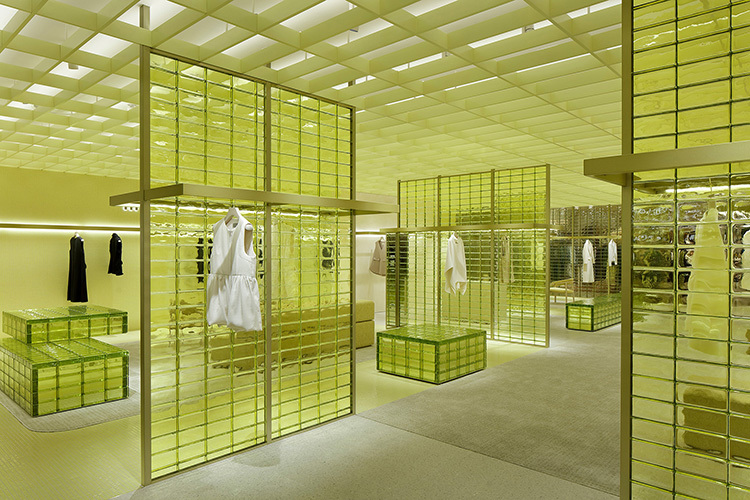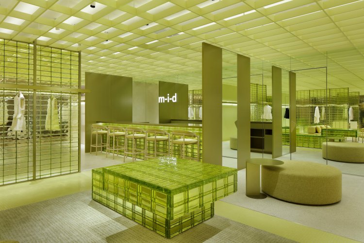 m-i-d创新的商店概念LIGHT HOUSE以其独特的黄色主题和多彩收尾的素材,为顾客带来了一种全新的空气感和个性。这个现代品牌形象的商店概念以其强烈的商店个性而闻名,通过运用黄色玻璃块的通透分区和迷宫般的布局,创造出艺术装置般的空间平衡。