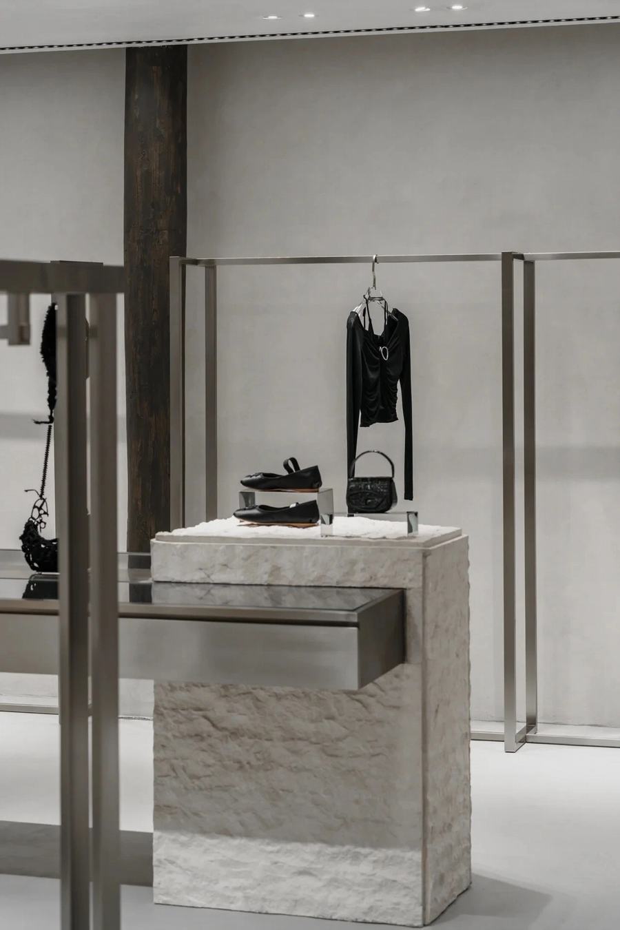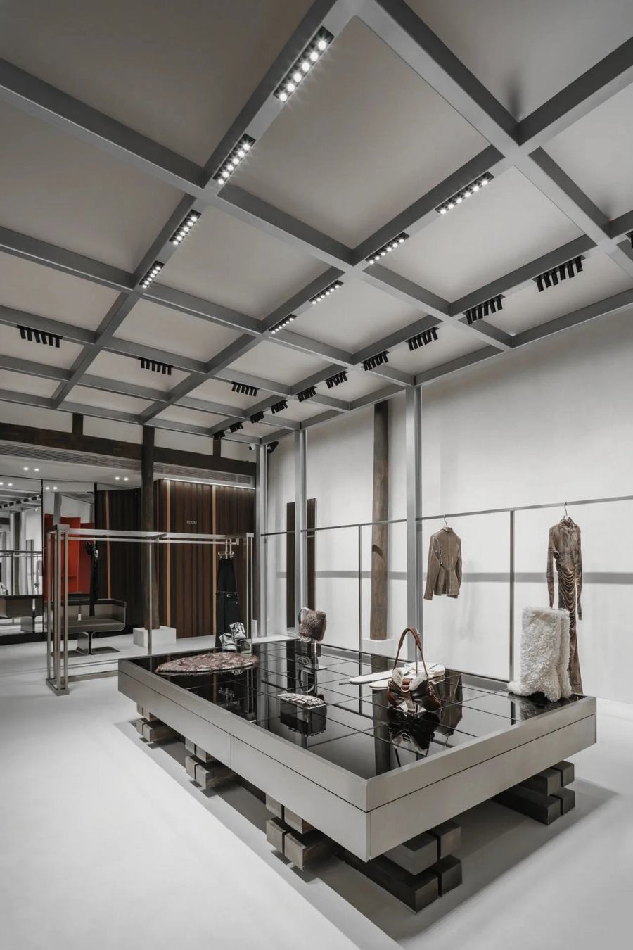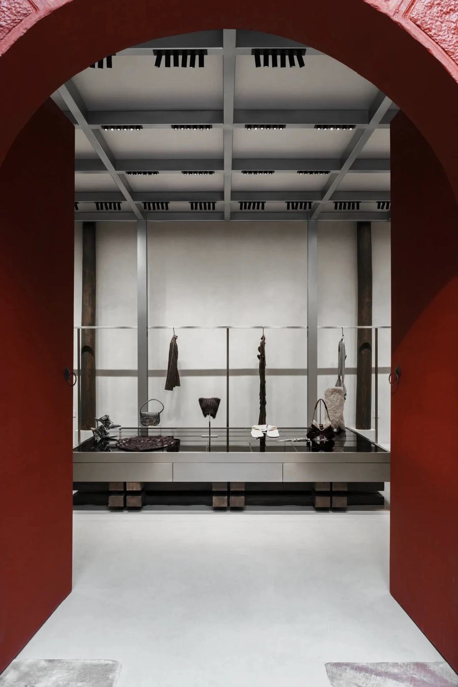 不仅如此,ENG CONCEPT在不同的门店中也都有独特的设计主题。例如北京THE BOX朝外门店,力求创造一种平衡的氛围,大面积运用混凝土作为主要材料,并点缀清冷的不锈钢。上海TX淮海店则以”AfterGlow 启示录概念”为主题,呼唤人们对末日与生命重思,对科技发展的双面性进行审视,约50%的空间用以陈列装置艺术。