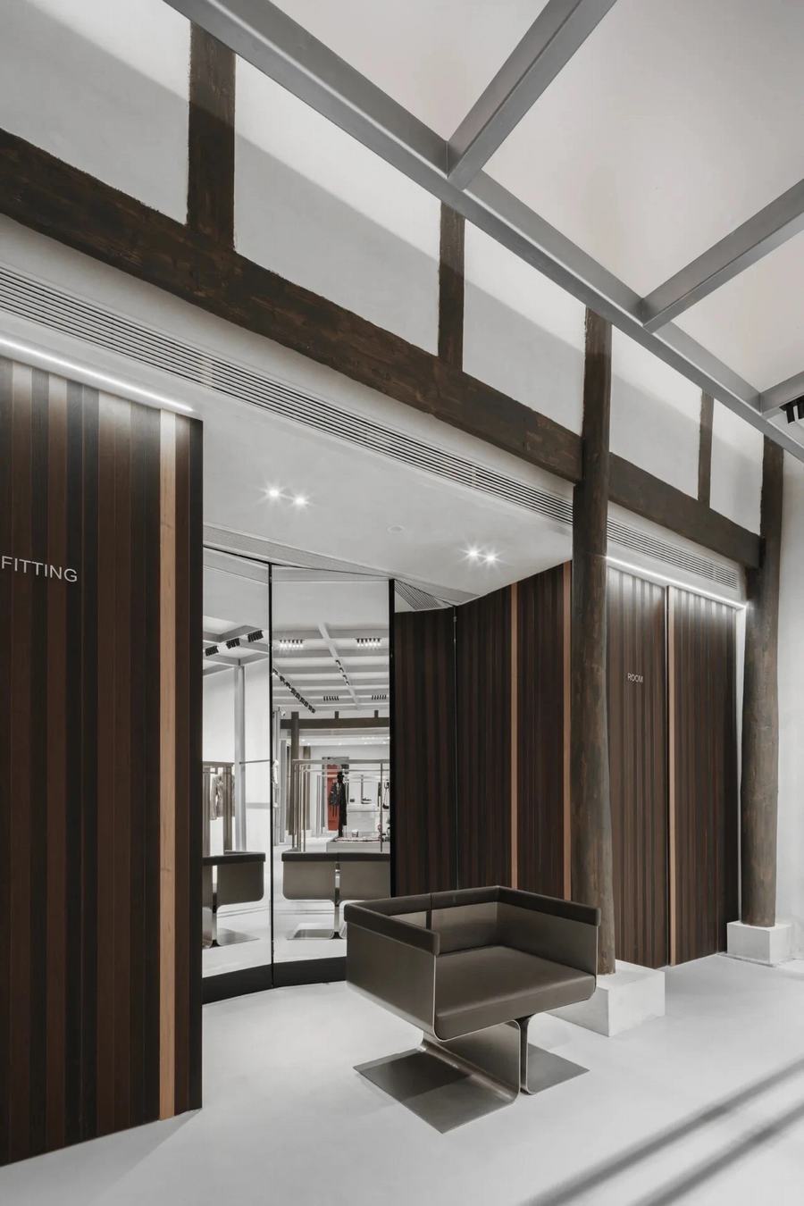 ENG CONCEPT的每个门店都有独特的设计主题,成都店秉承了”修旧如旧”的设计原则。在保留建筑结构和传统元素的基础上,融入现代材料和形态,展现出浓郁的文化特色。例如,店铺外立面尽可能地保持原有风貌,并且辅以牌匾、灯笼、拱门、门牌等街巷元素,营造出一种充满历史感的氛围。内部空间设计则注重细节和艺术性,通过陈列装置艺术、小众设计师品牌等方式,突出个性和时尚感。